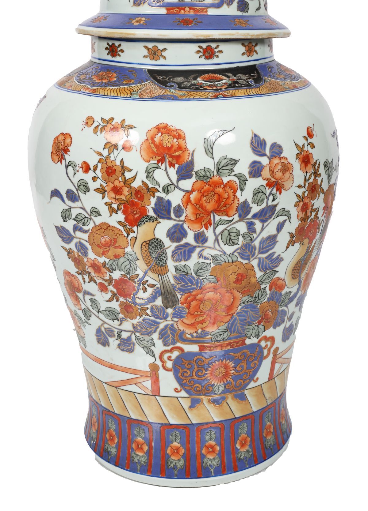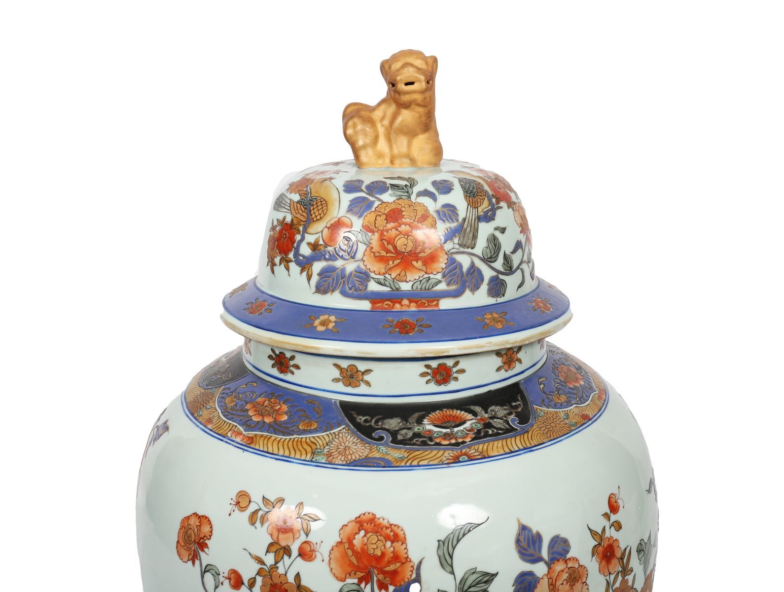 Lot 1338 LARGE CHINESE POLYCHROME VASE AND COVER, IMARI PATTERN