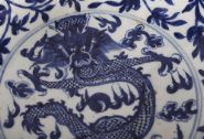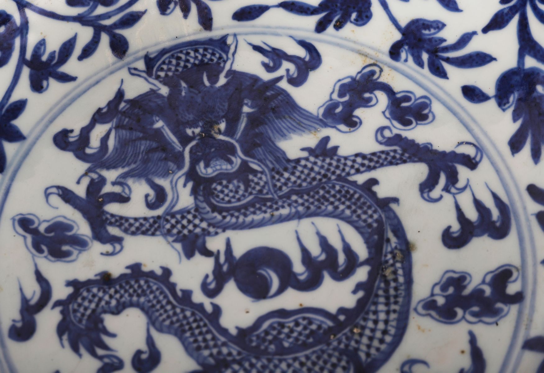of circular form, with central dragon cartouche surrounded by blossoms and leaf sprays.
