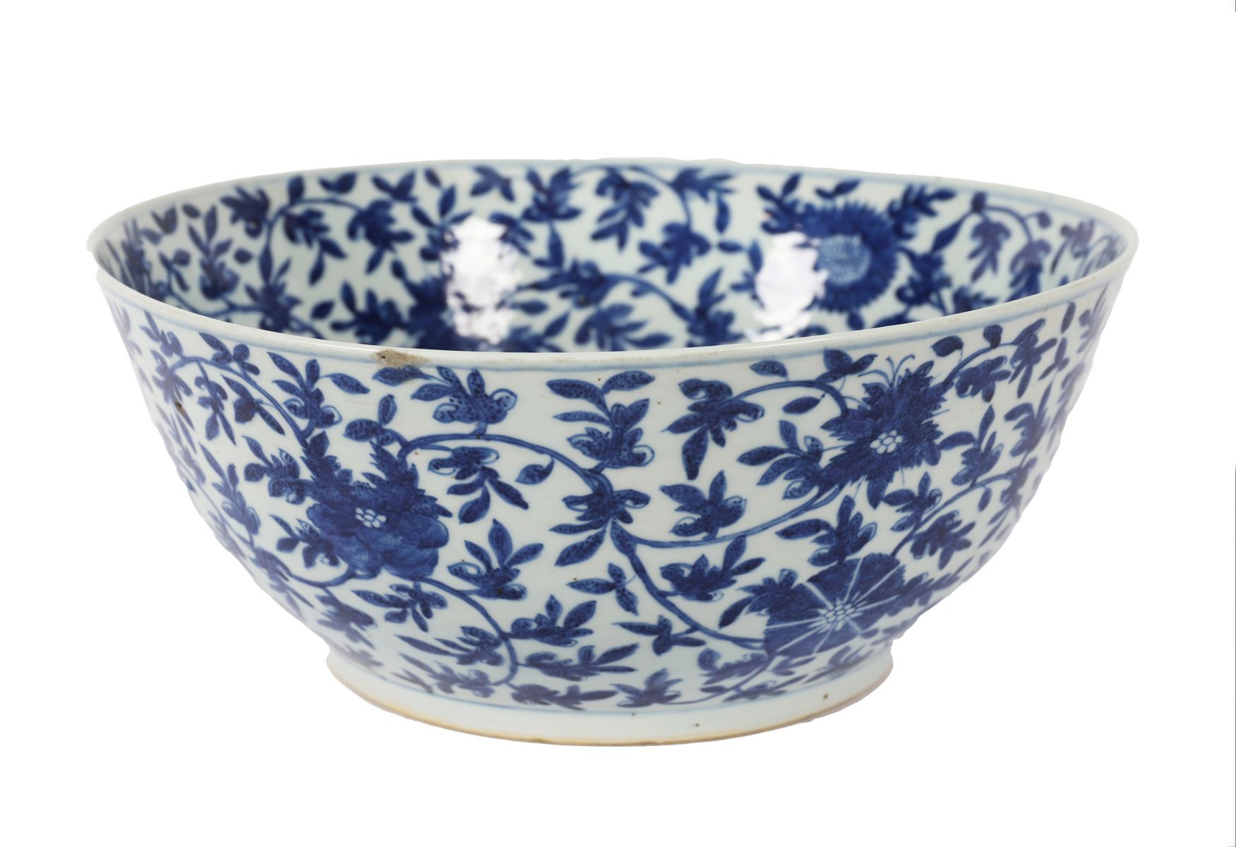 Lot 203 LARGE CHINESE QING BLUE AND WHITE BOWL
