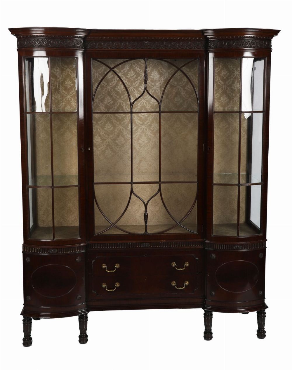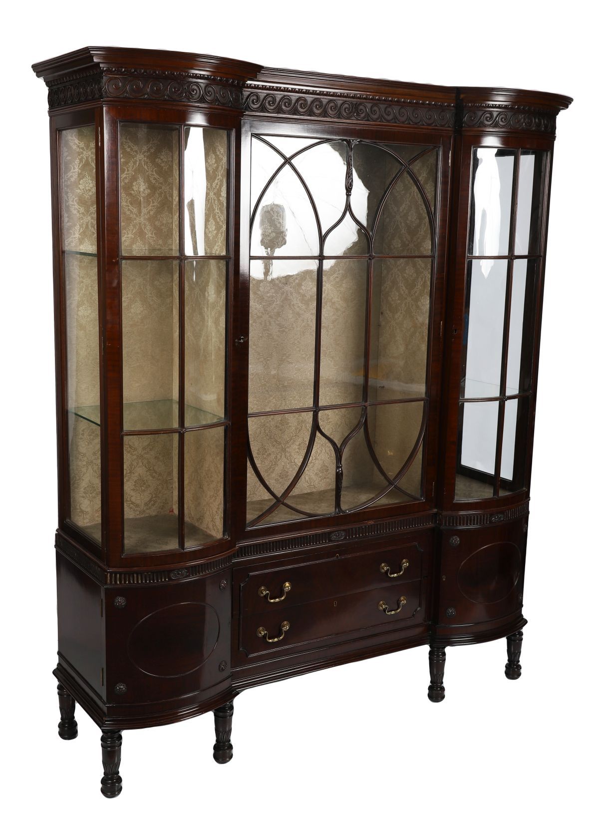 Lot 464 LARGE EDWARDIAN MAHOGANY ADAM-STYLE INVERTED BOW-FRONT DISPLAY CABINET