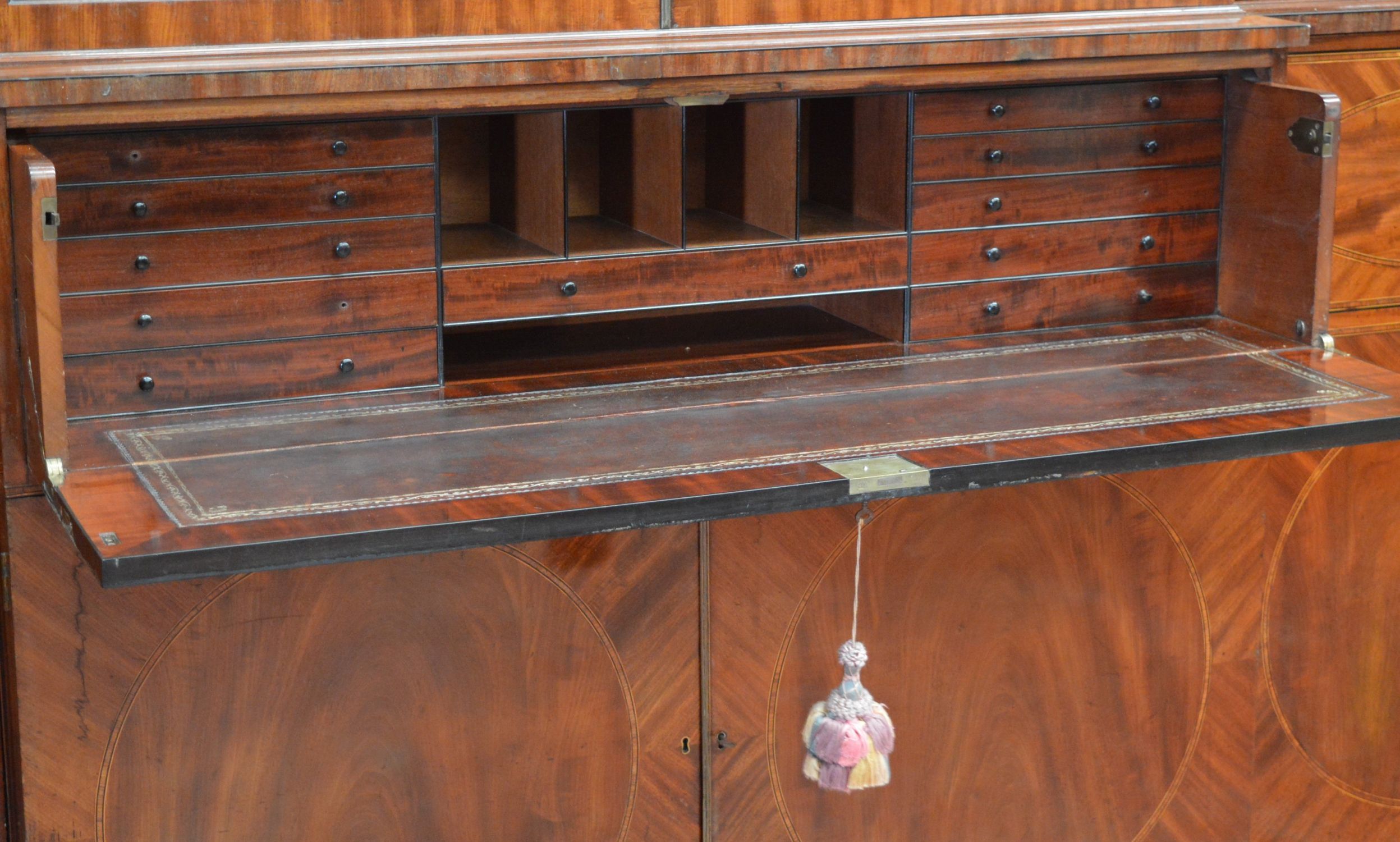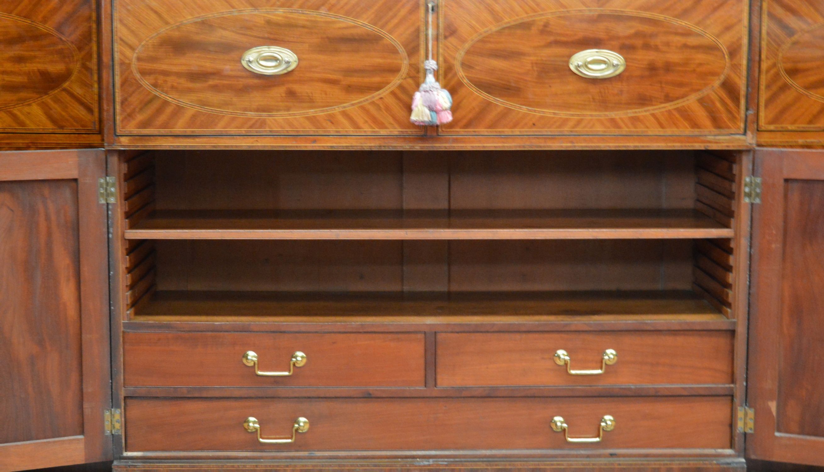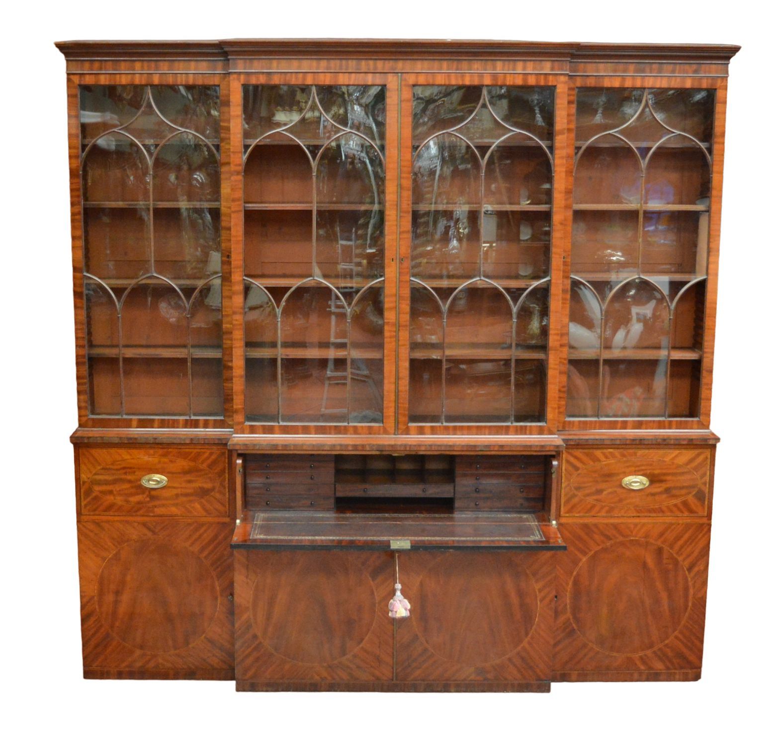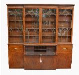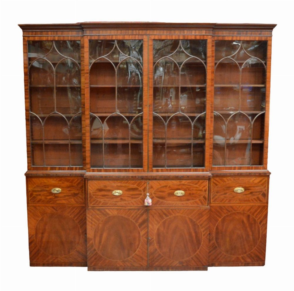 Lot 926 LARGE GEORGIAN MAHOGANY INLAID FOUR-DOOR BREAKFRONT BOOKCASE WITH SECRETAIRE