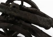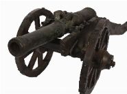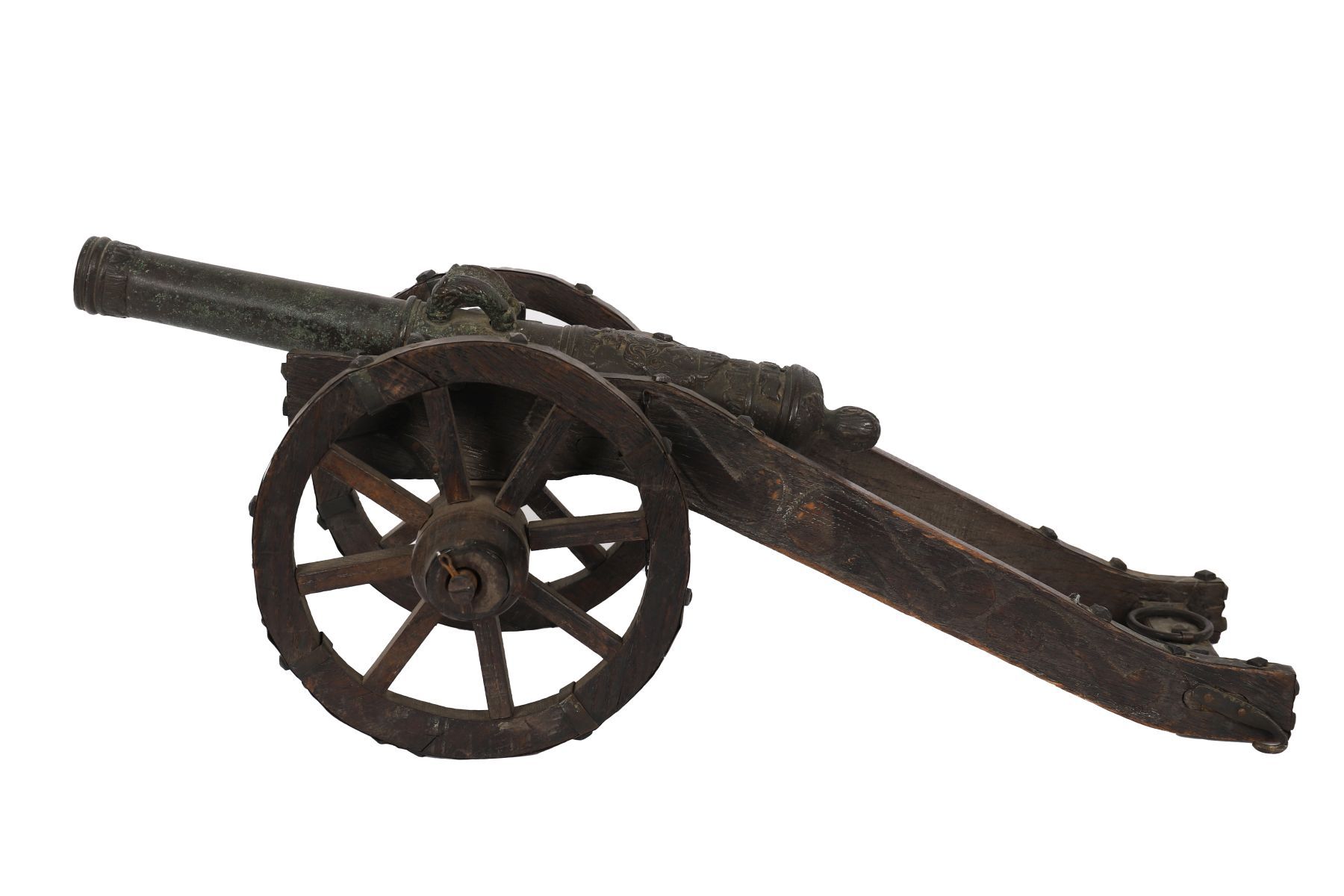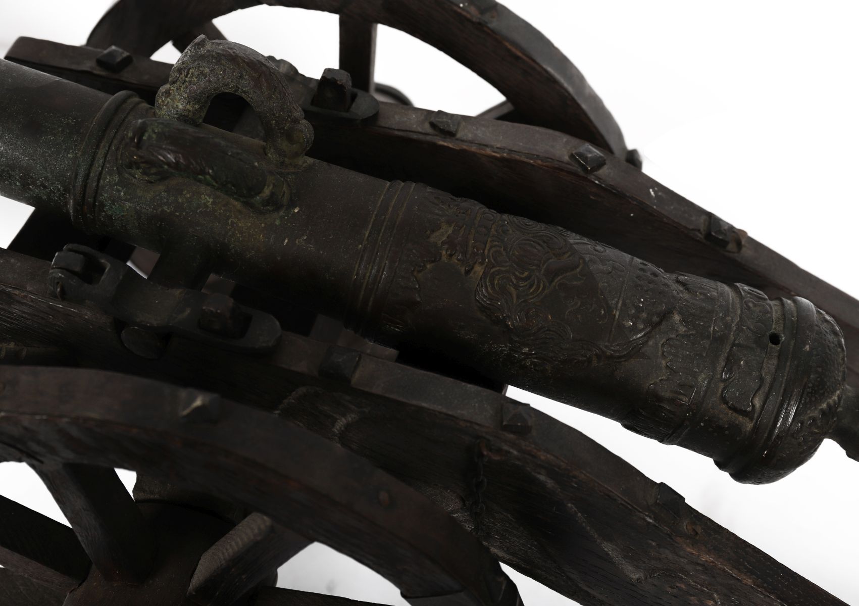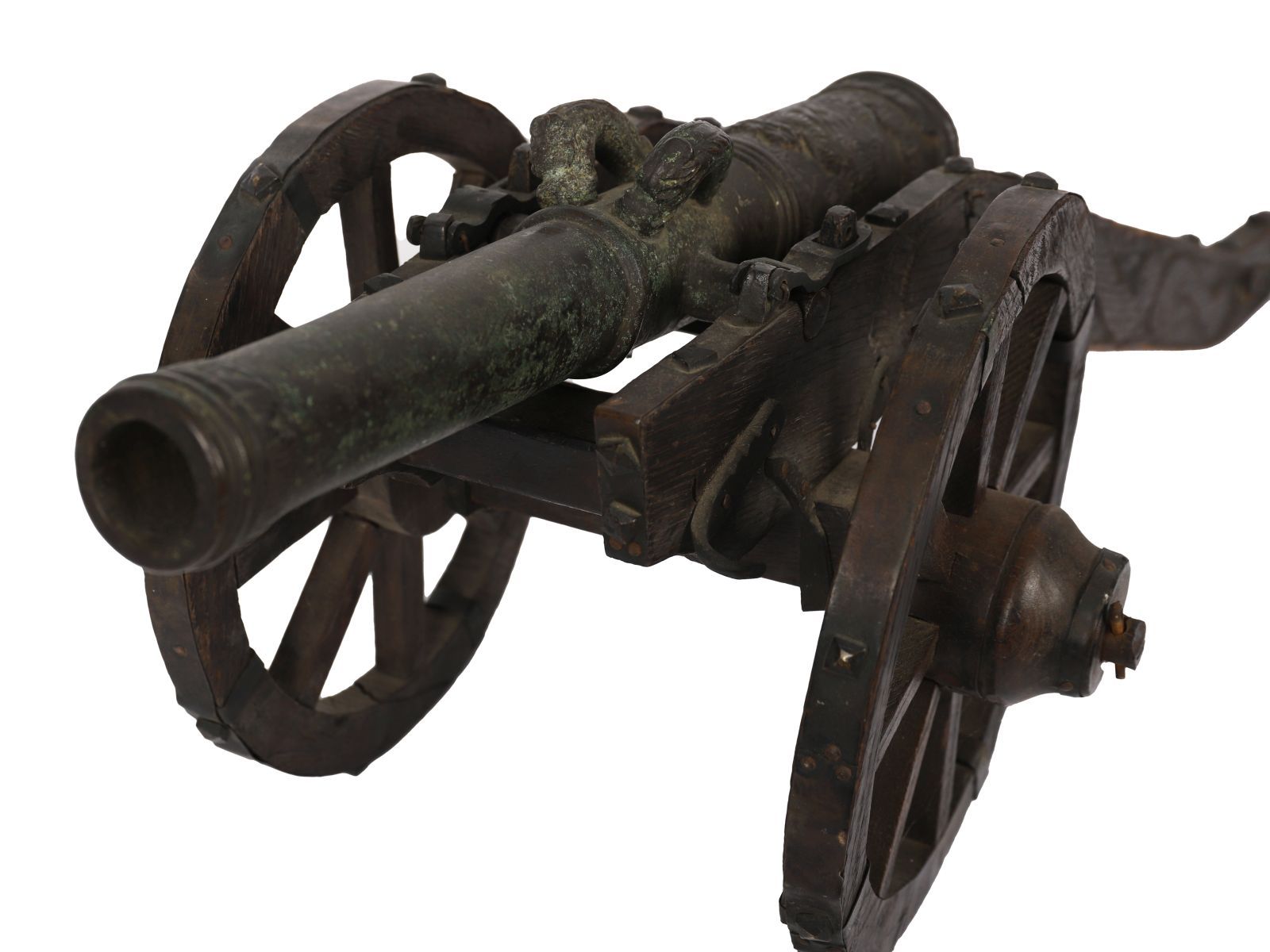 Lot 5 LARGE MODEL BRONZE CANNON ON A TWIN-WHEELED CARRIAGE