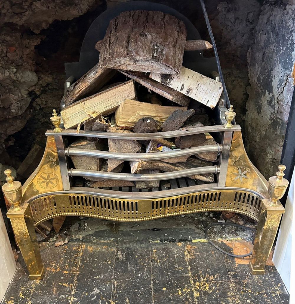 Lot 210 LARGE NEOCLASSICAL CAST-IRON AND BRASS SERPENTINE-FRONTED FIRE BASKET