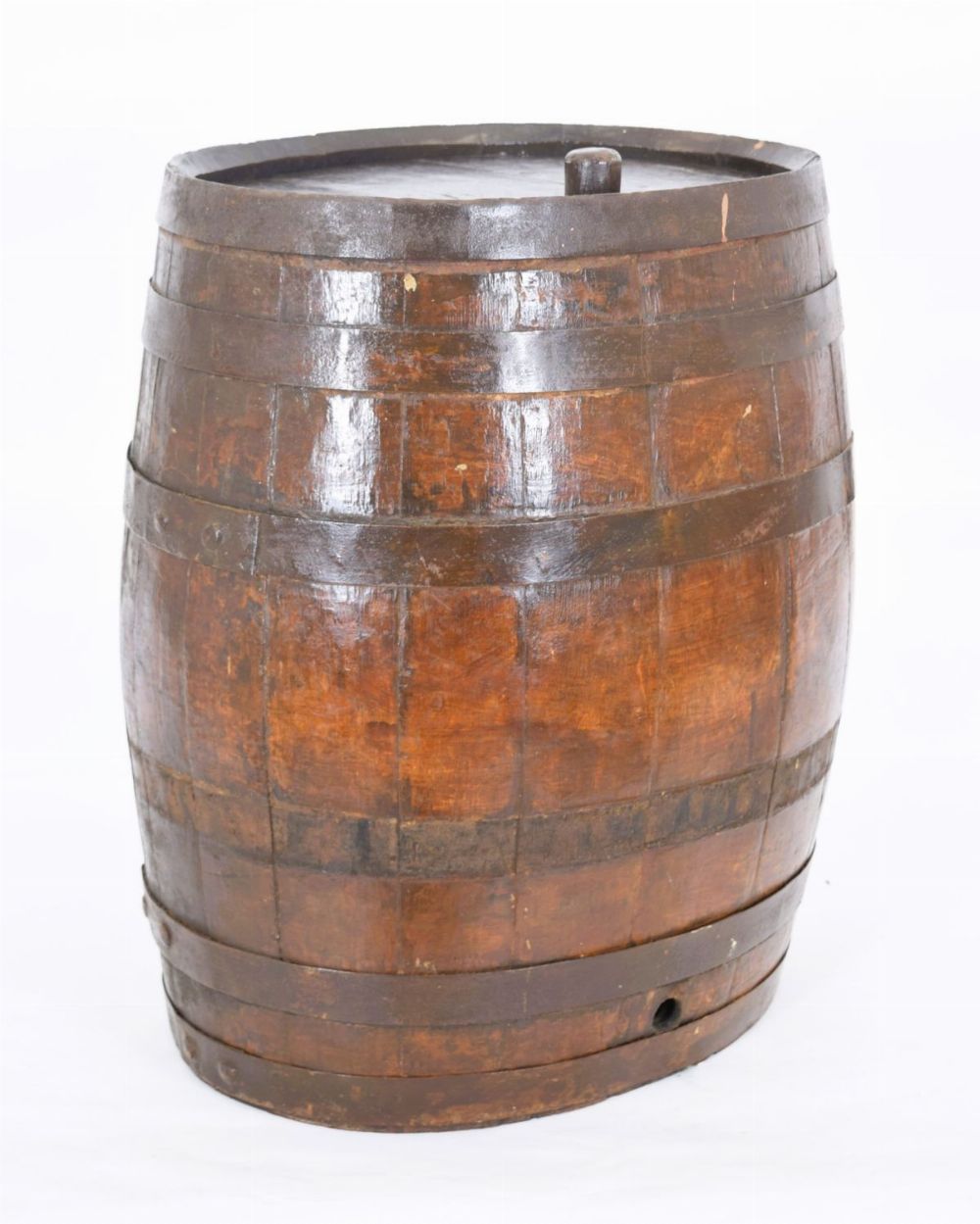 Lot 1638 LARGE OAK METAL-BOUND BARREL STAMPED “PORTERâ€