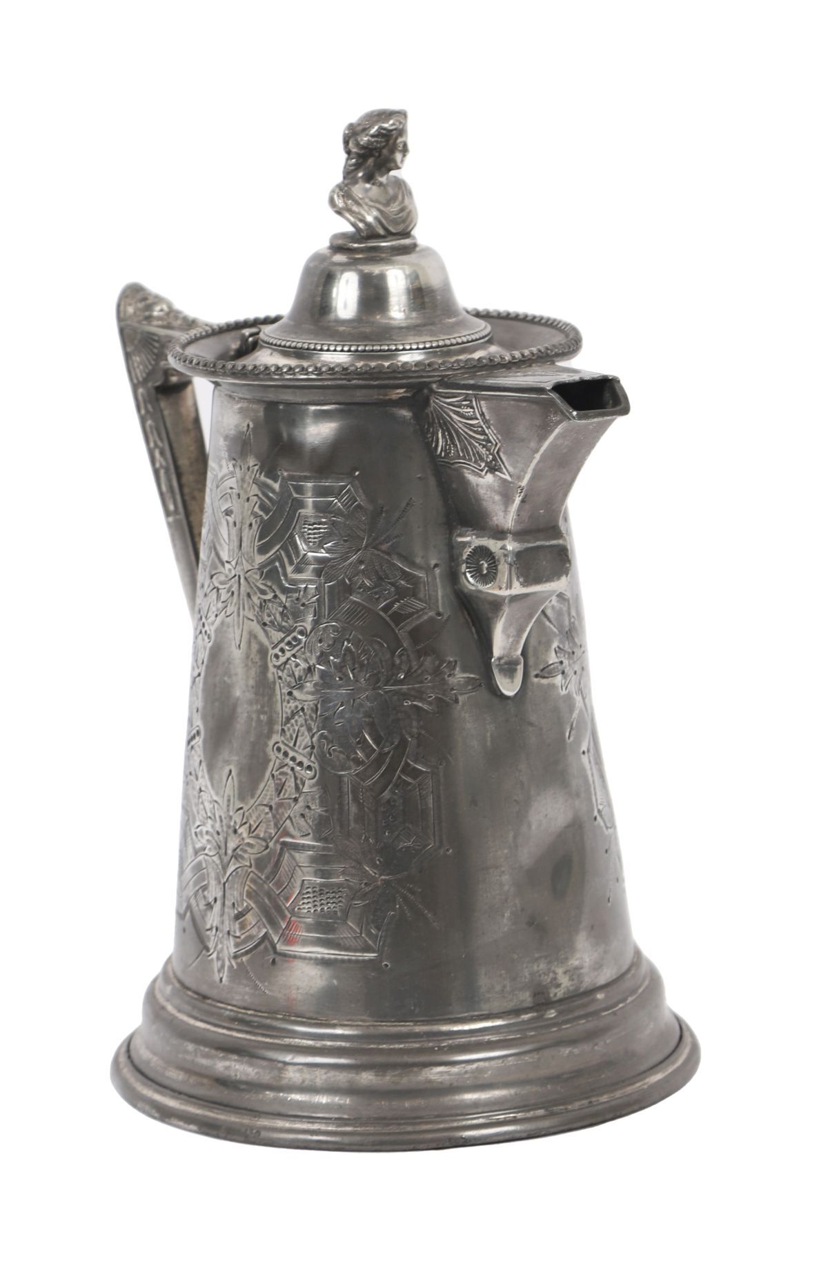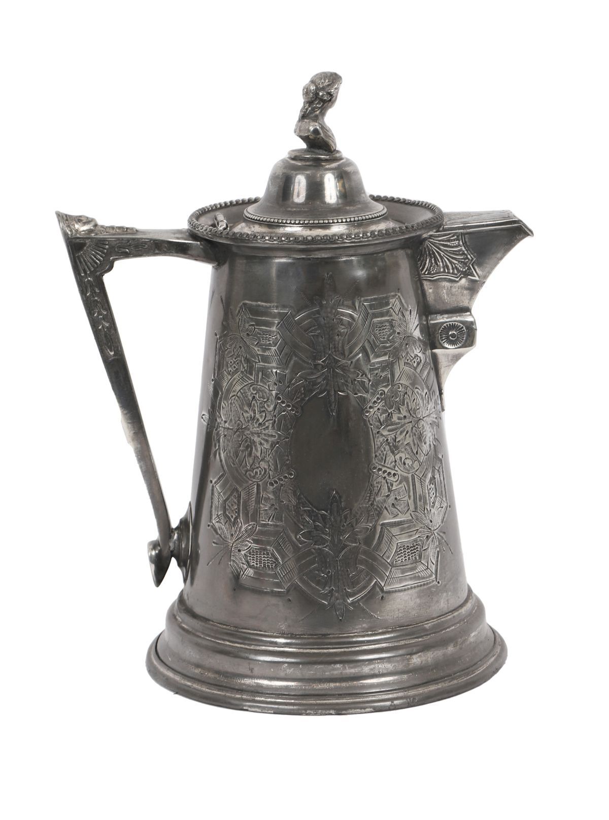 Lot 1193 LARGE PEWTER TANKARD WITH FIGURAL DECORATION