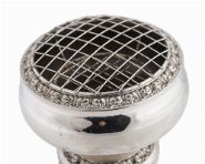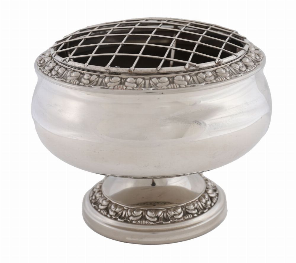 A large, silver-plated pedestal centrepiece, of circular bowl form with pierced grille top and foliate cast borders, raised on a spreading foot.