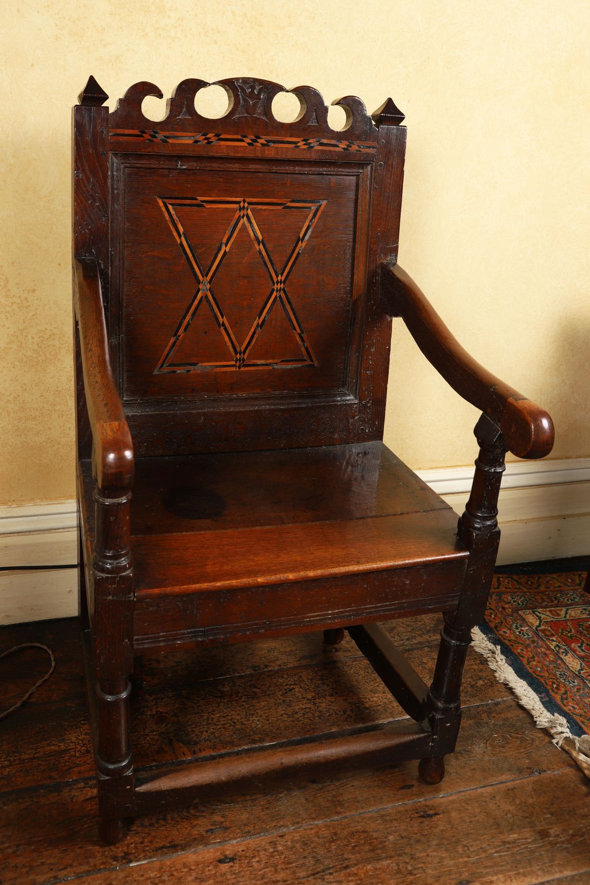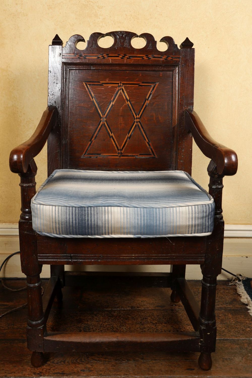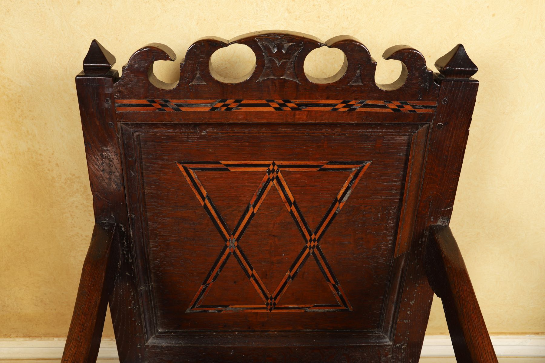 Lot 316 LATE 17TH-CENTURY OAK ARMCHAIR WITH CHEQUERED INLAY