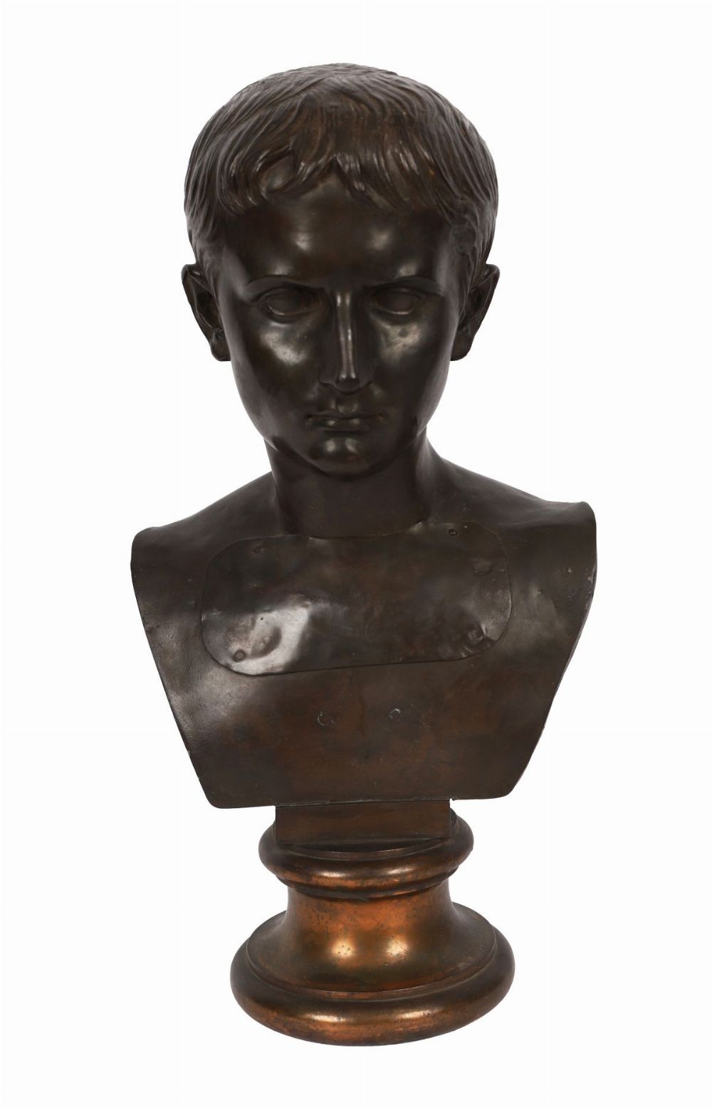 Lot 128 LATE 18TH-CENTURY BRONZE BUST OF A ROMAN HEAD