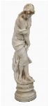 A carved white marble figures of a young woman shown standing in contrapposto with partially draped garments, the modelling naturalistic and softly detailed, with carefully worked hair and flowing drapery. Both raised on integral circular socles.