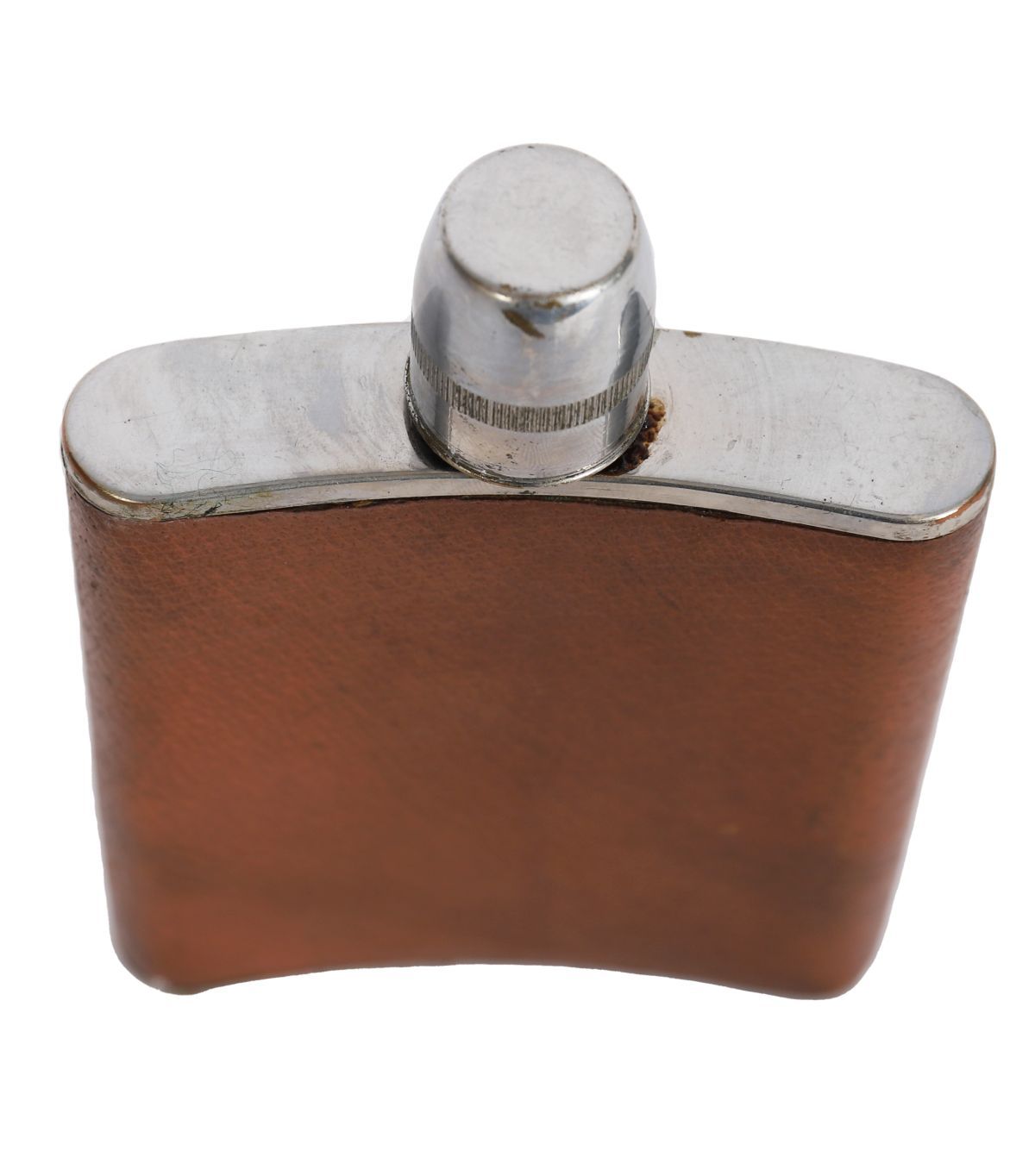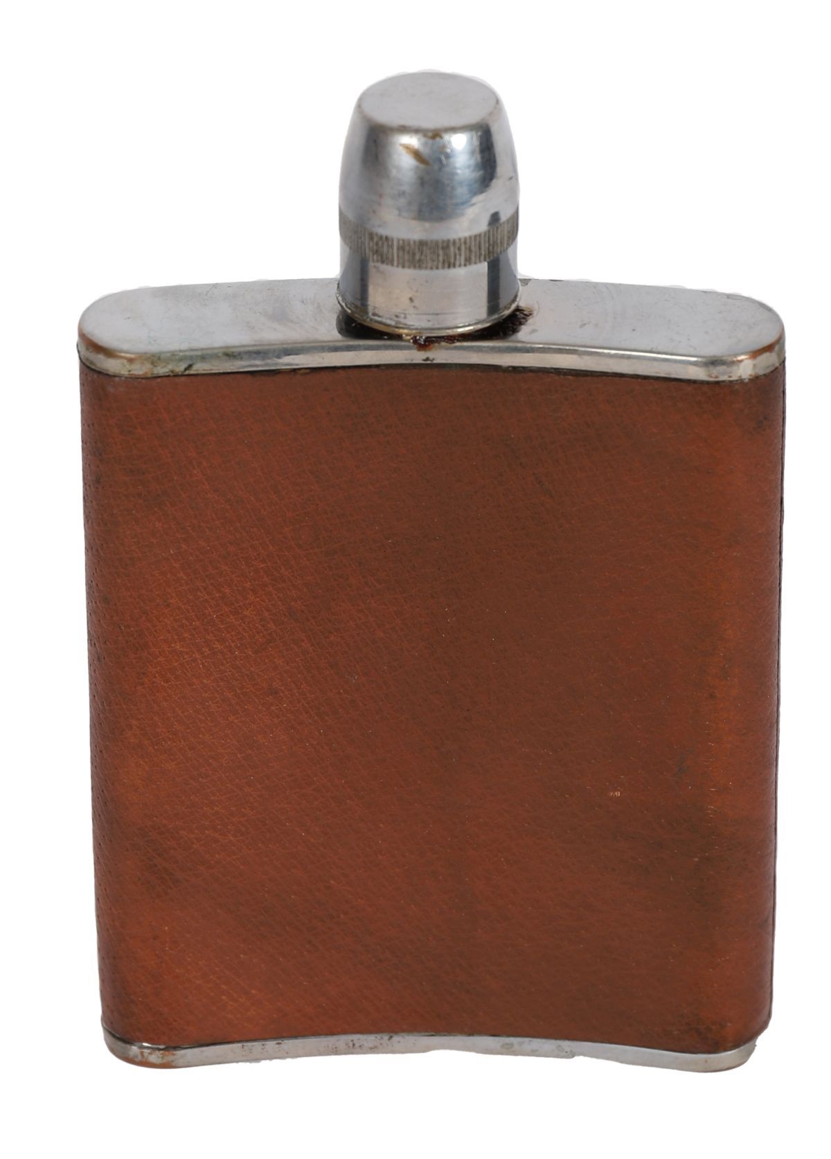 Lot 1056 LEATHER-COVERED AND POLISHED CHROME HIP FLASK