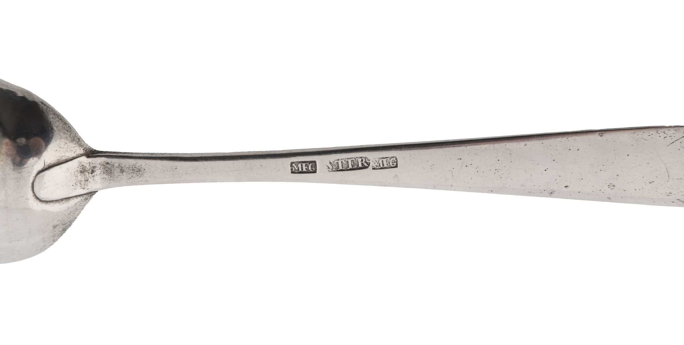 Maker: Maurice Fitzgerald, 1760 -1817. Fiddle pattern with bright-cut decoration and oval cartouche, monogrammed.