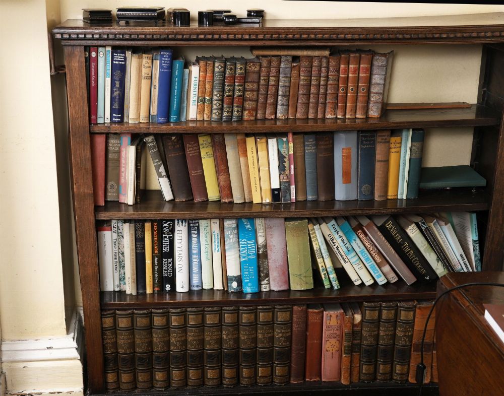 A mixed lot of books, including leather-bound volumes and later cloth-bound examples, covering literature, history, and reference. Various dates and publishers. 18th–20th century.
