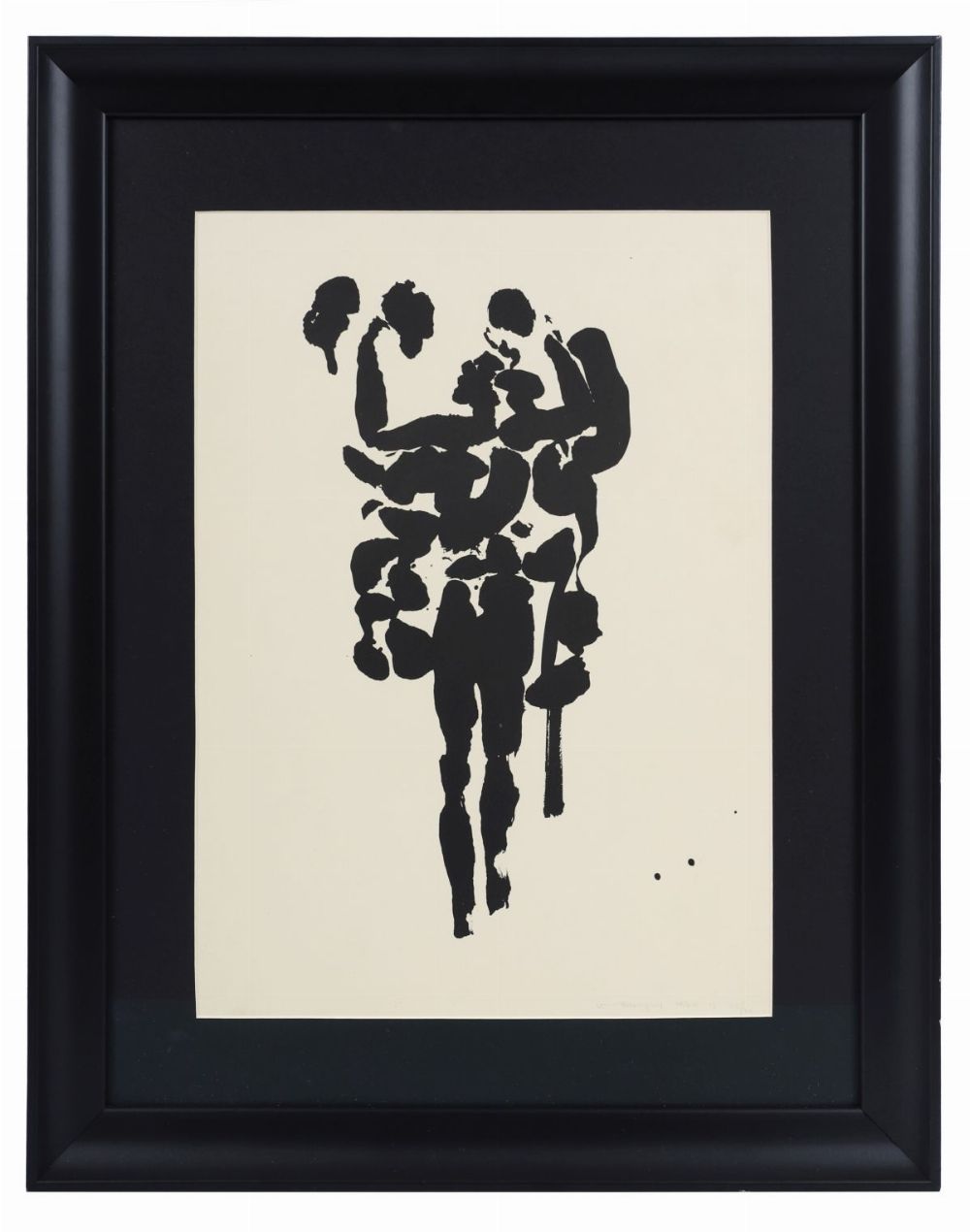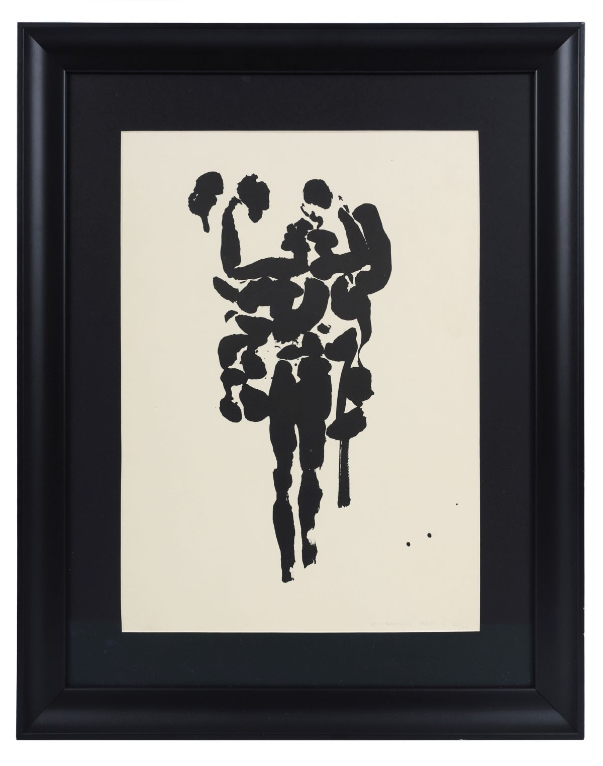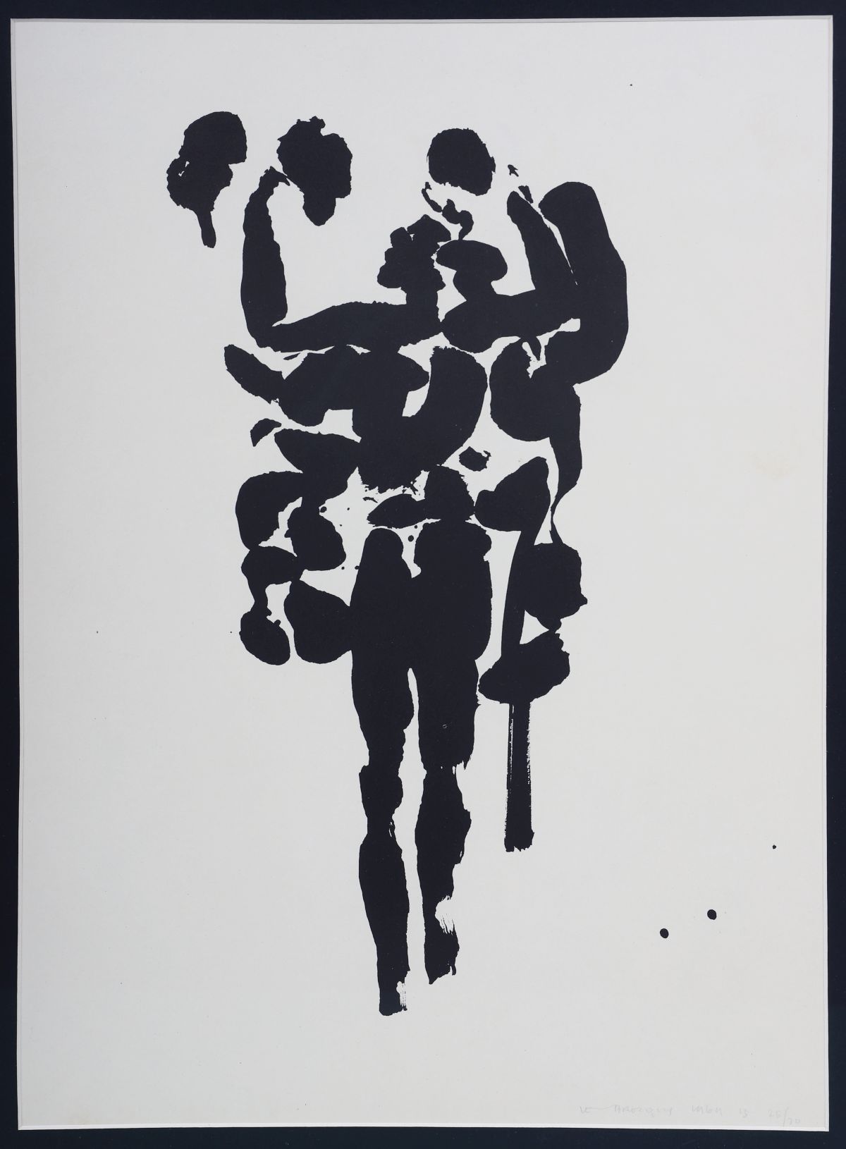 A striking graphic interpretation of the mythic Irish hero Cúchulainn, executed in bold abstracted black forms on a pale ground. Le Brocquy’s dynamic treatment of the human figure and use of negative space evoke both heroism and vulnerability.