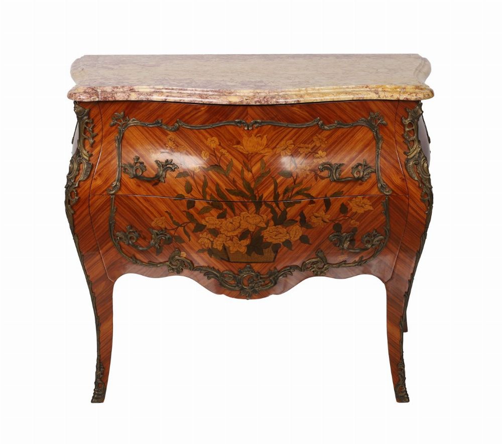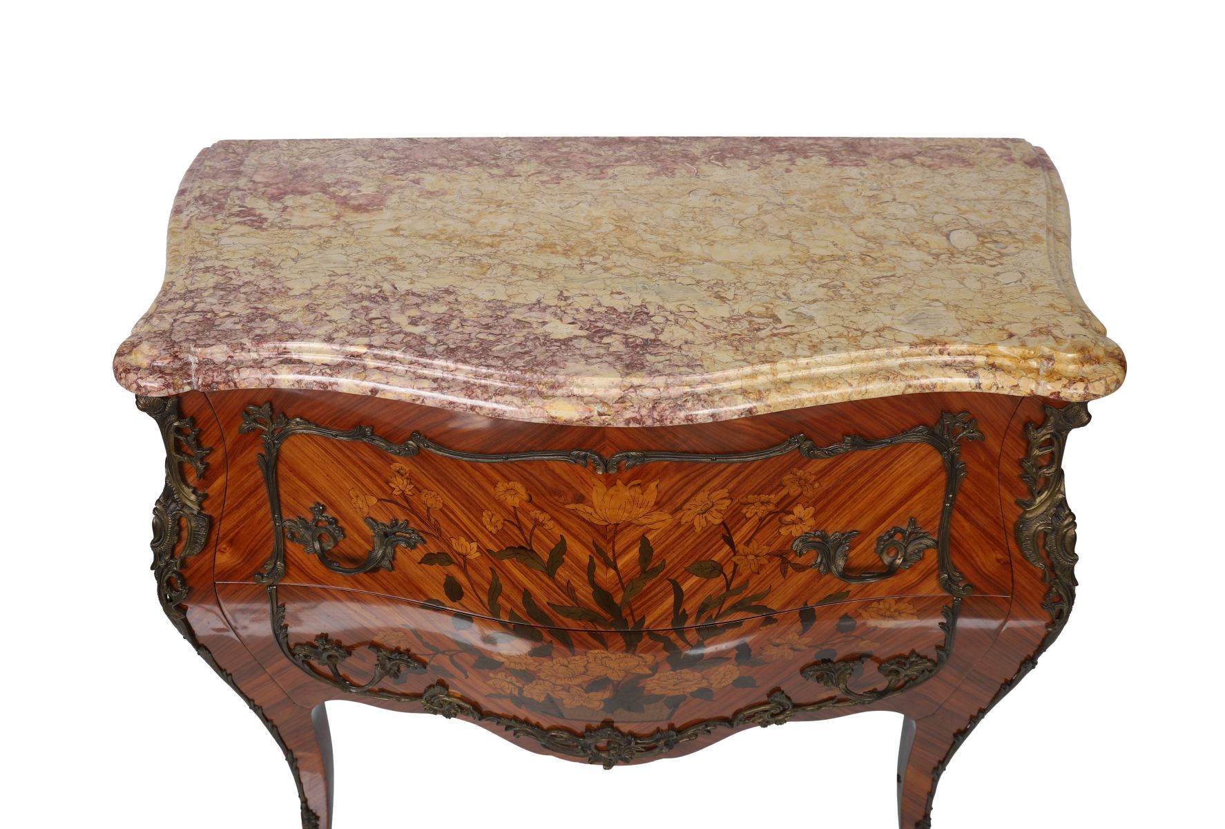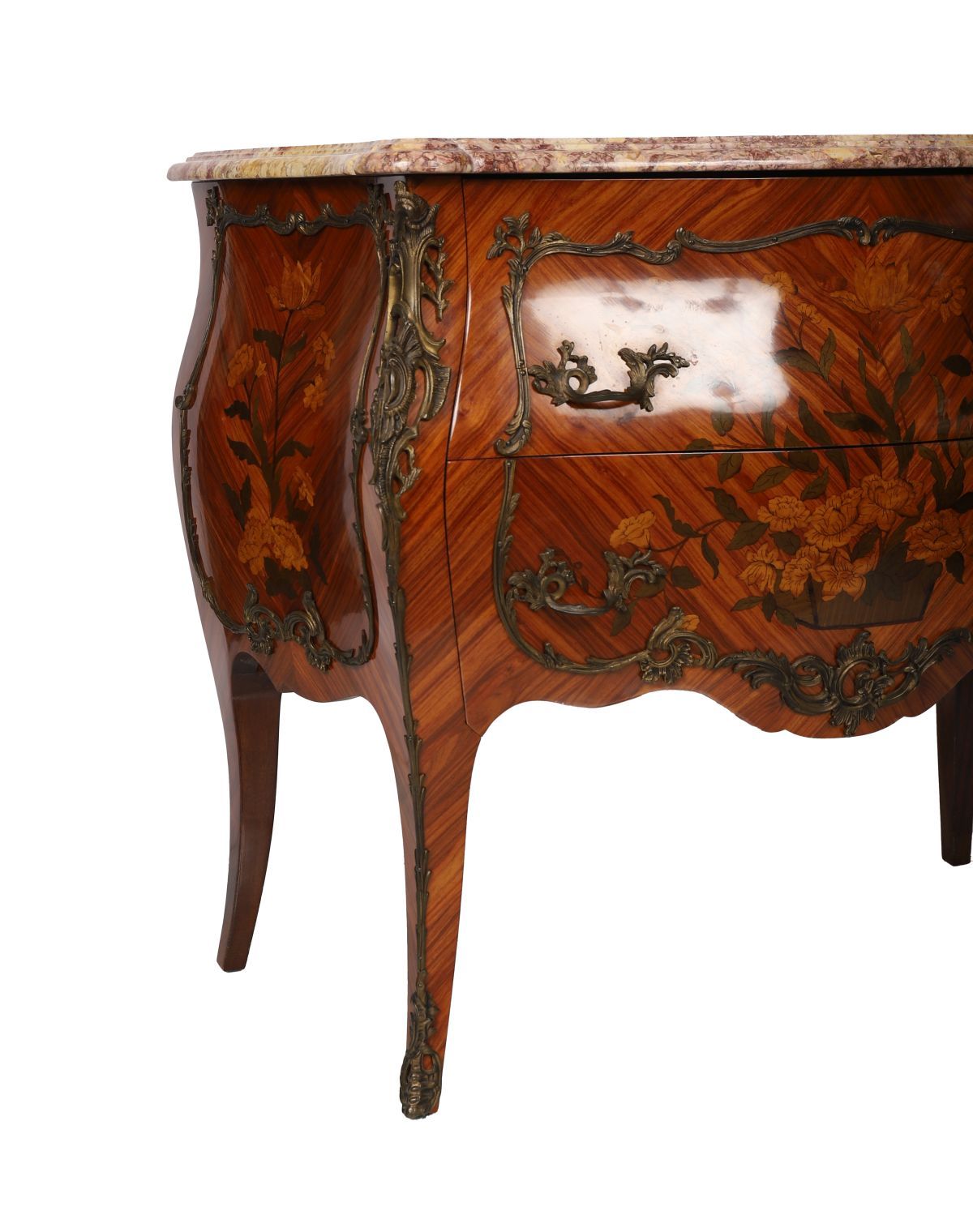 Lot 329 LOUIS XV-STYLE MARQUETRY COMMODE WITH MARBLE TOP