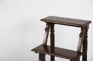 the rectangular top above two graduated tiers supported on turned and reeded uprights. The lower section with moulded apron and raised on ring turned legs.