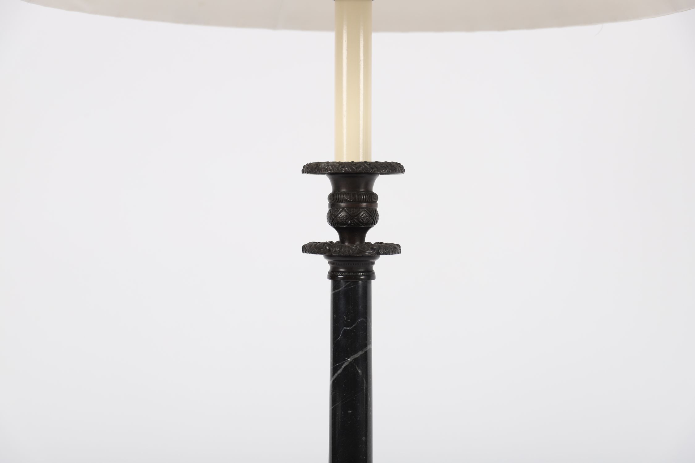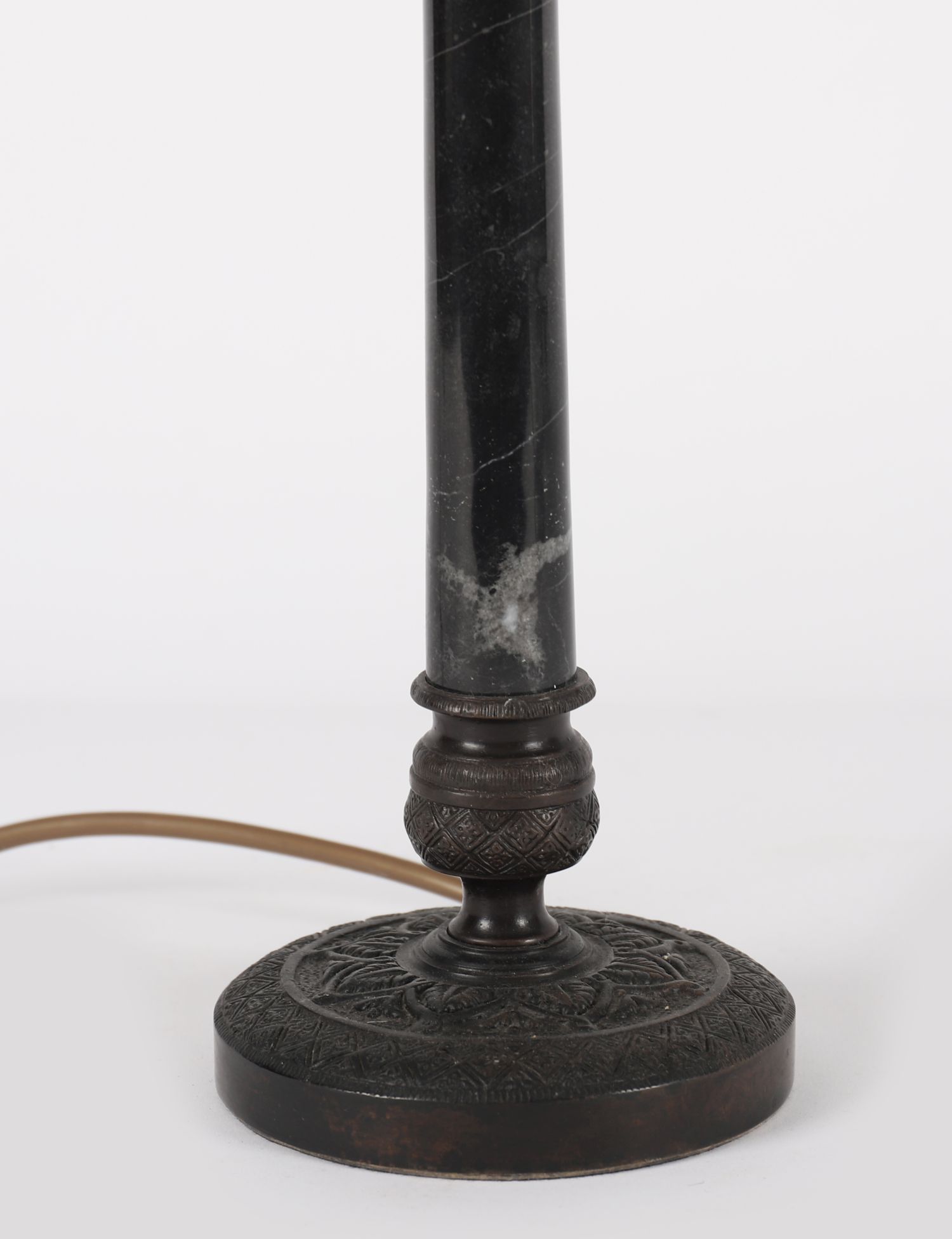 Lot 1024 MARBLE AND BRONZE STEM TABLE LAMP WITH SHADE