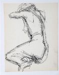 Ink sketch of a seated nude, bearing gallery stamp verso and stated to have been acquired from the artist.