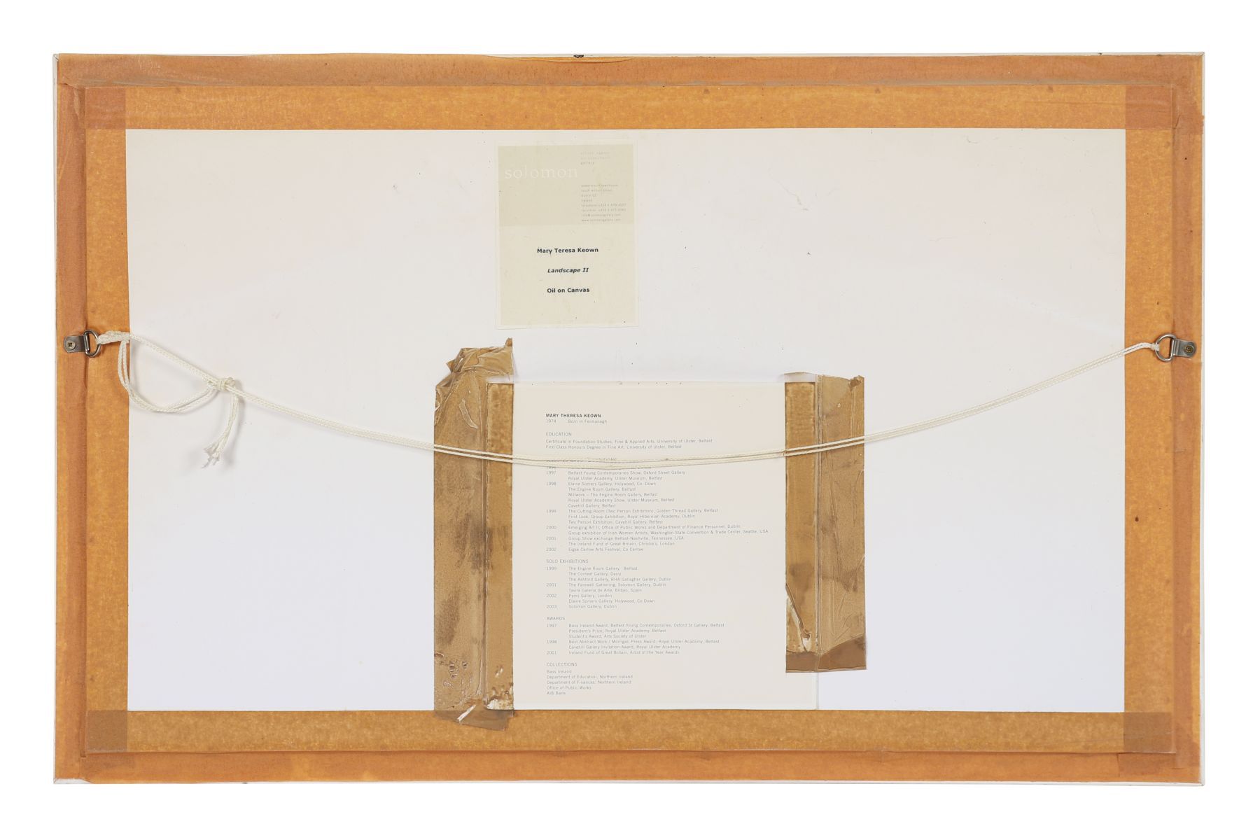 Provenance: The Solomon Gallery, Dublin (Label Verso), where acquired by the