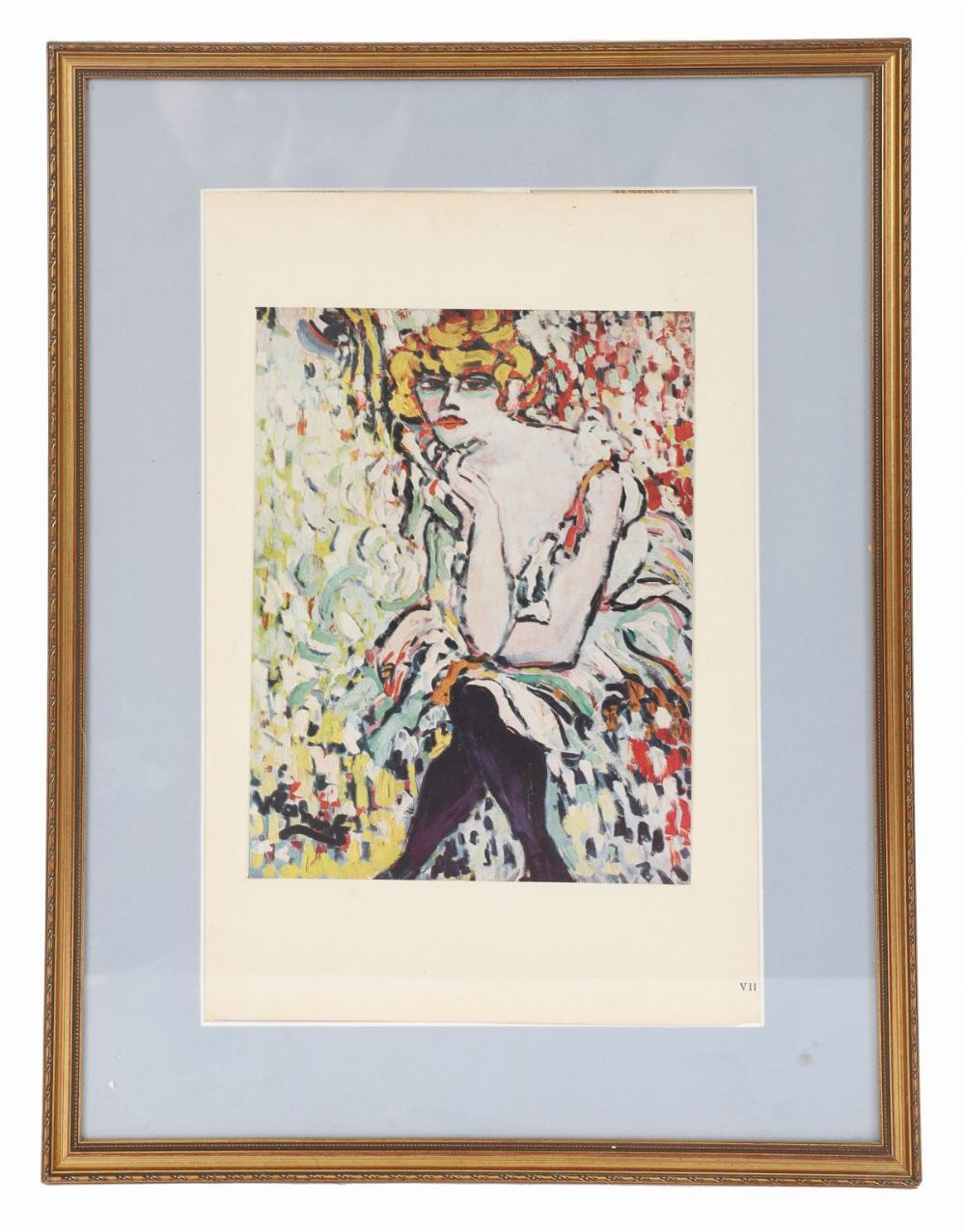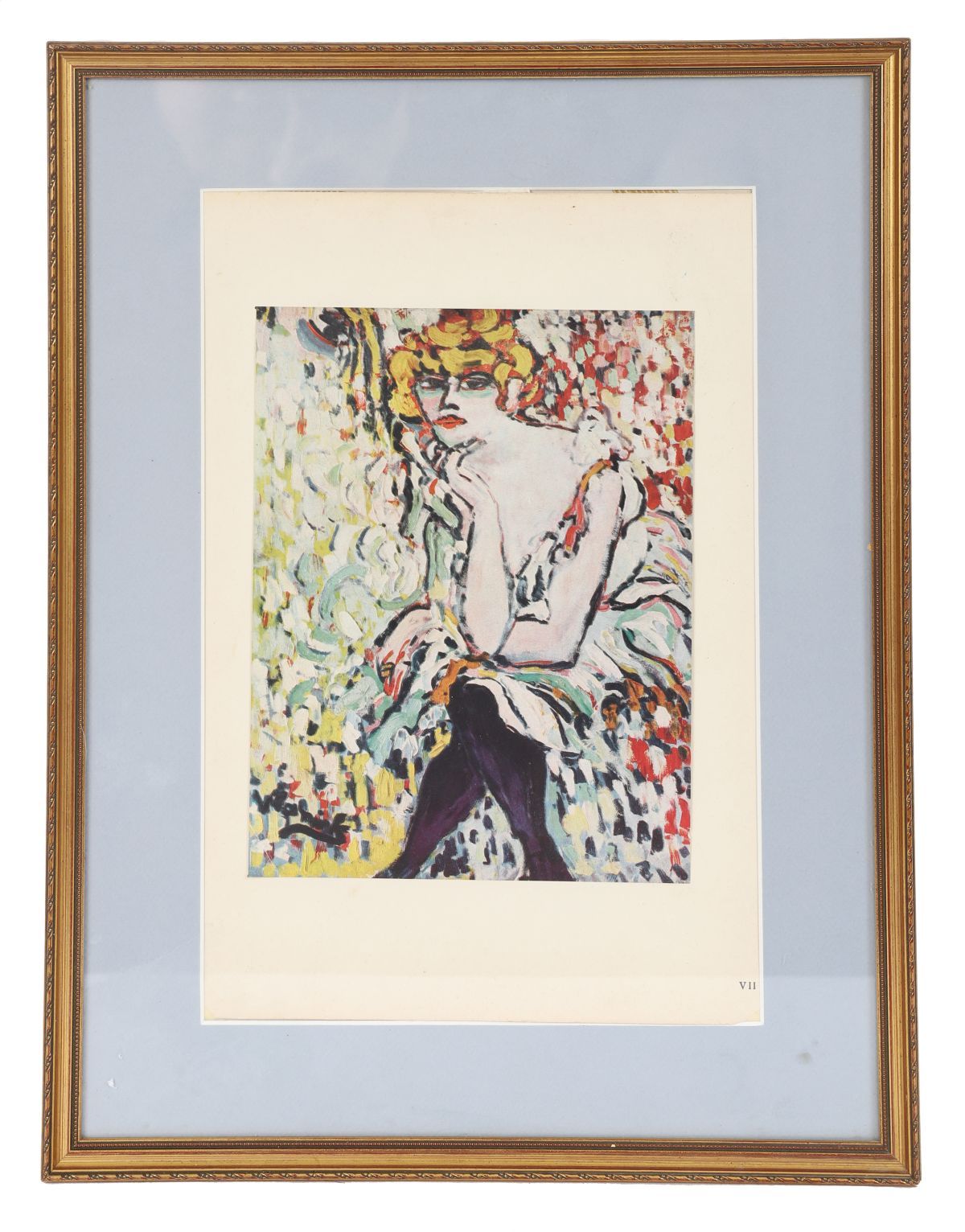 Tipped-in colour offset lithograph after Maurice de Vlaminck, titled La Danseuse du Rat Mort, mounted and framed. Published mid-20th century.