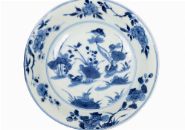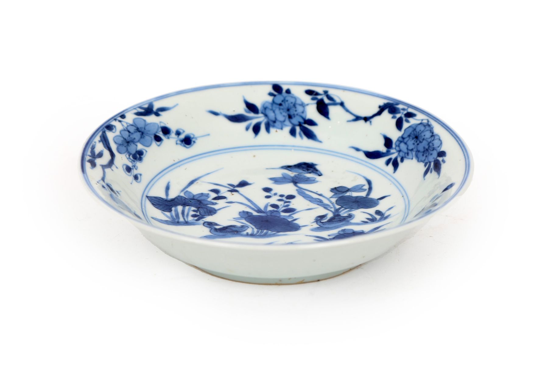Lot 348 MING BLUE AND WHITE DUCKS IN A POND DISH