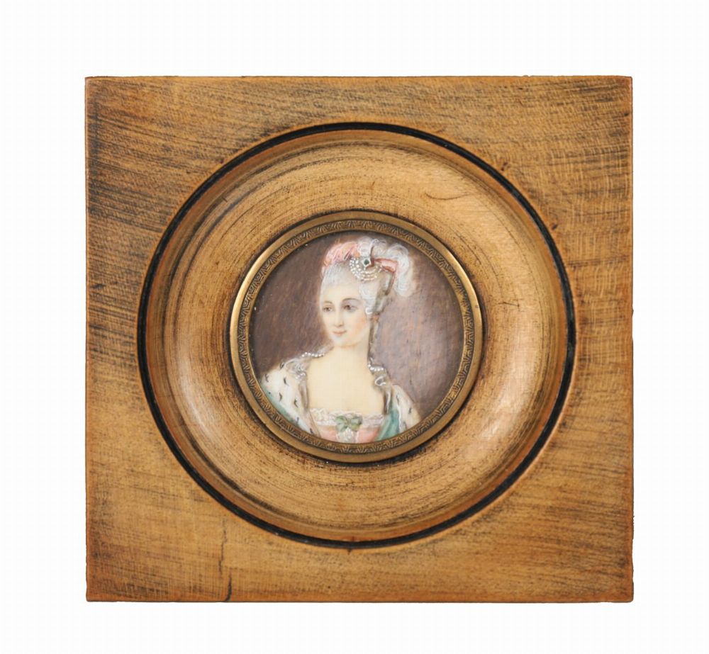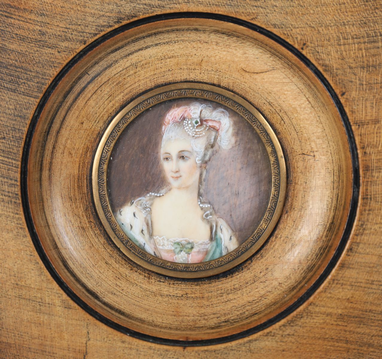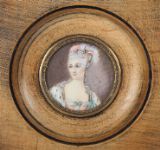 Lot 217 MINIATURE PORTRAIT OF AN 18TH-CENTURY LADY, IN WOOD FRAME