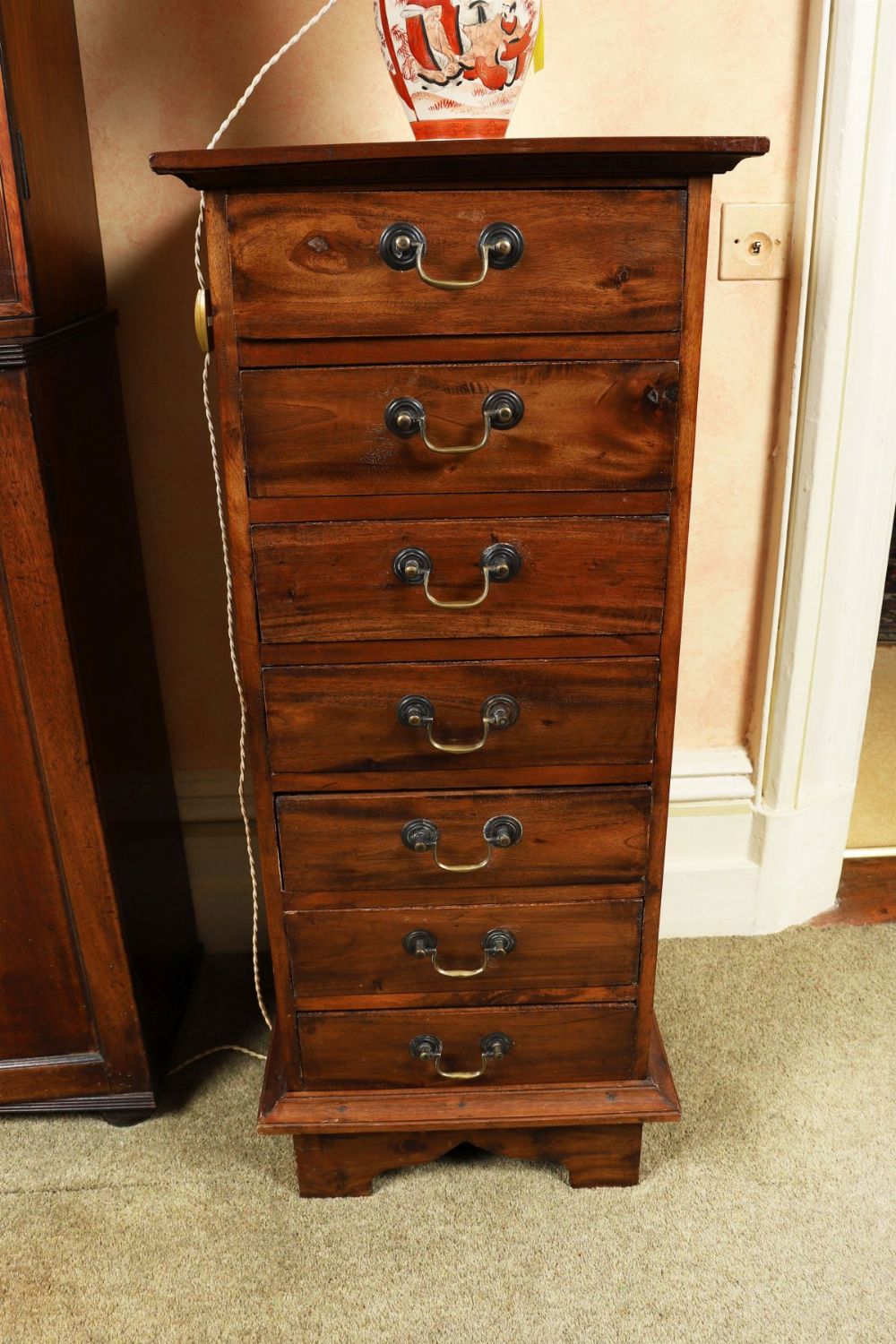 of 7 drawers furnished with brass scroll handles.
