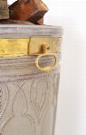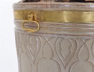 Lot 94 MONUMENTAL GOTHIC DESIGN PAINTED PEAT BARREL WITH BRASS MOUNTS