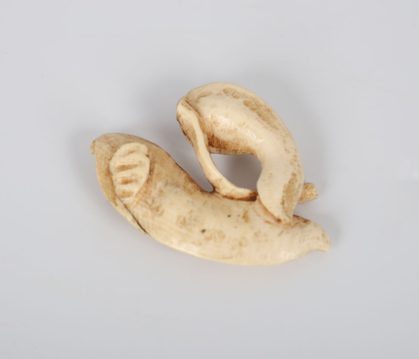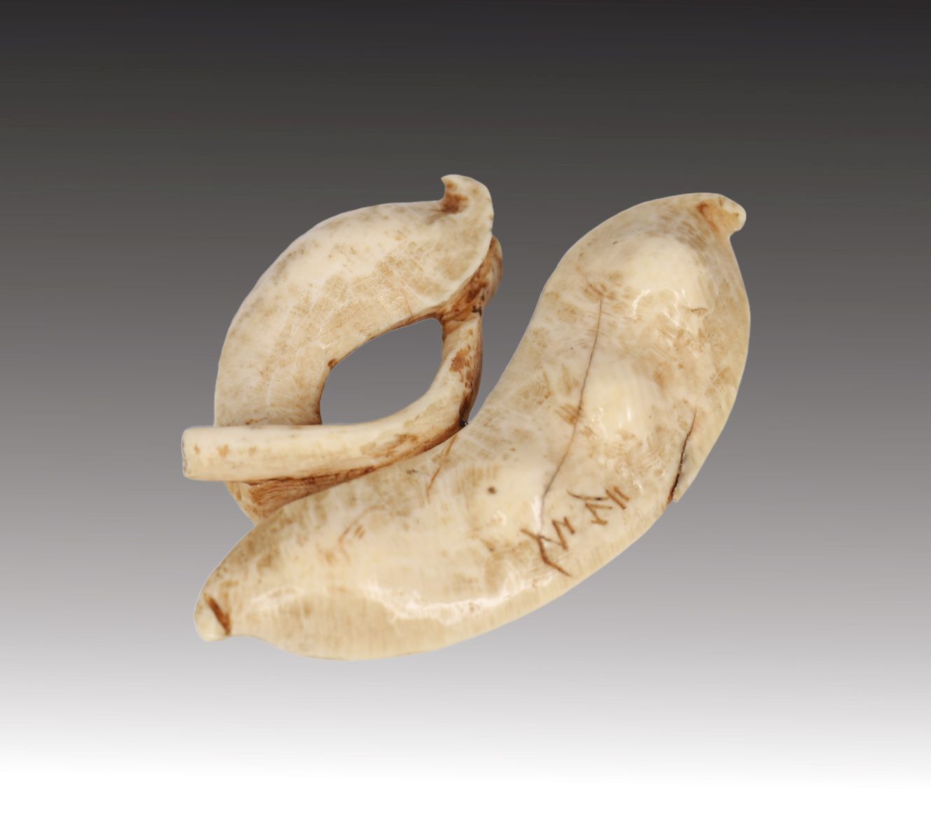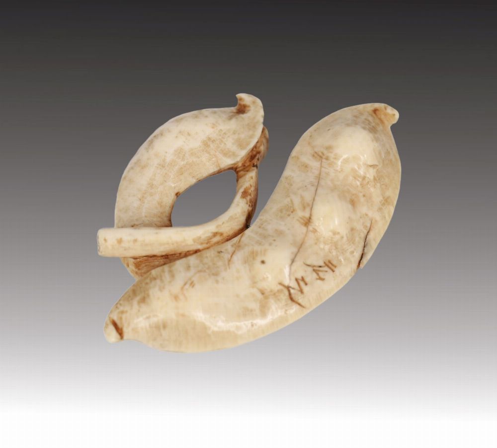 Lot 52 NATURALISTIC CARVED PEA-POD NETSUKE
