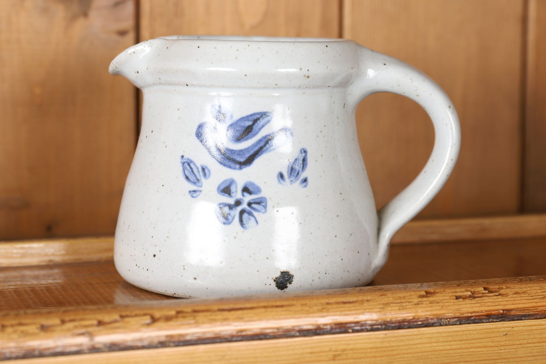 Of baluster form with pouring lip and loop handle, decorated with stylised foliate motifs in underglaze blue.
