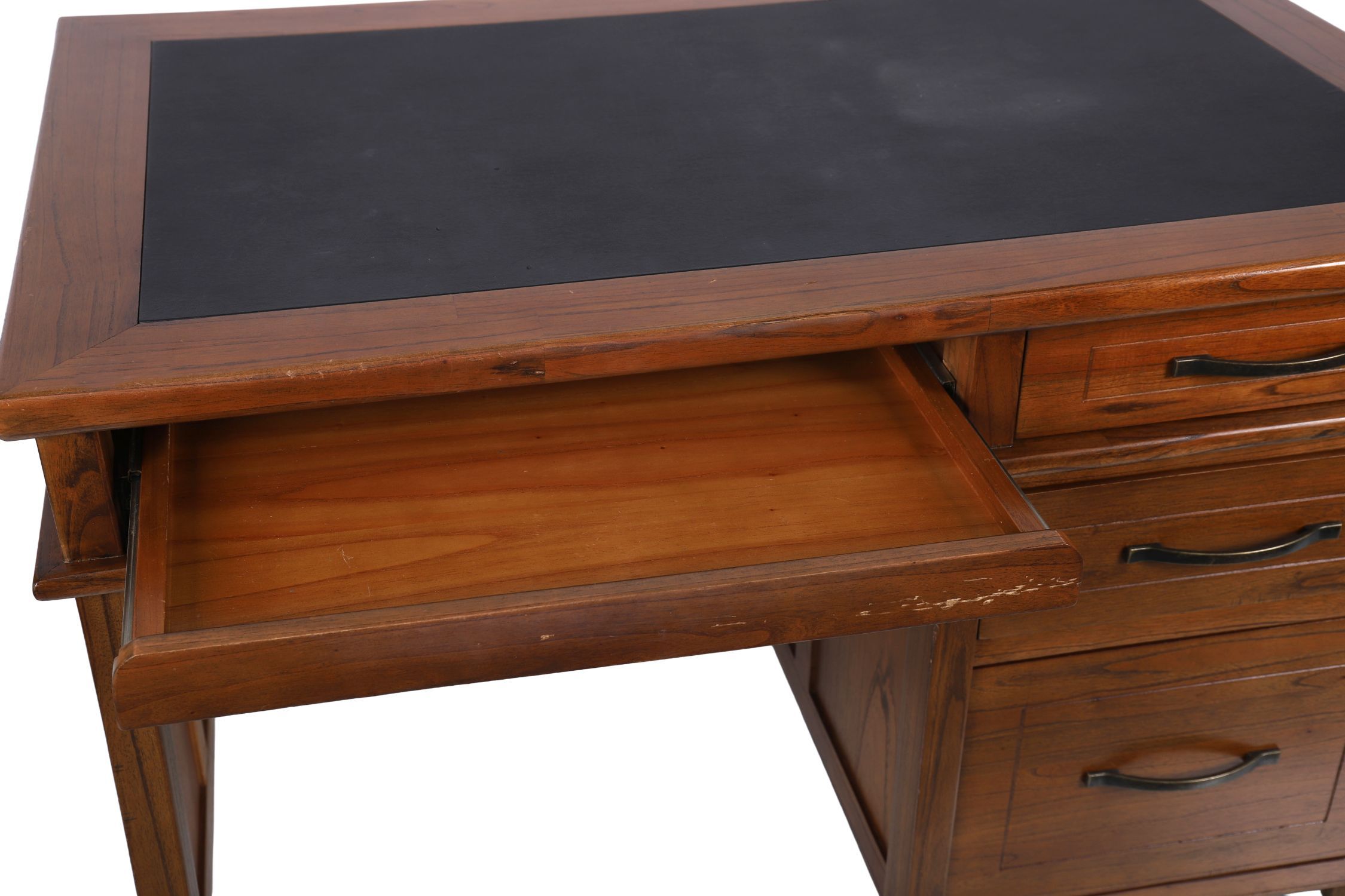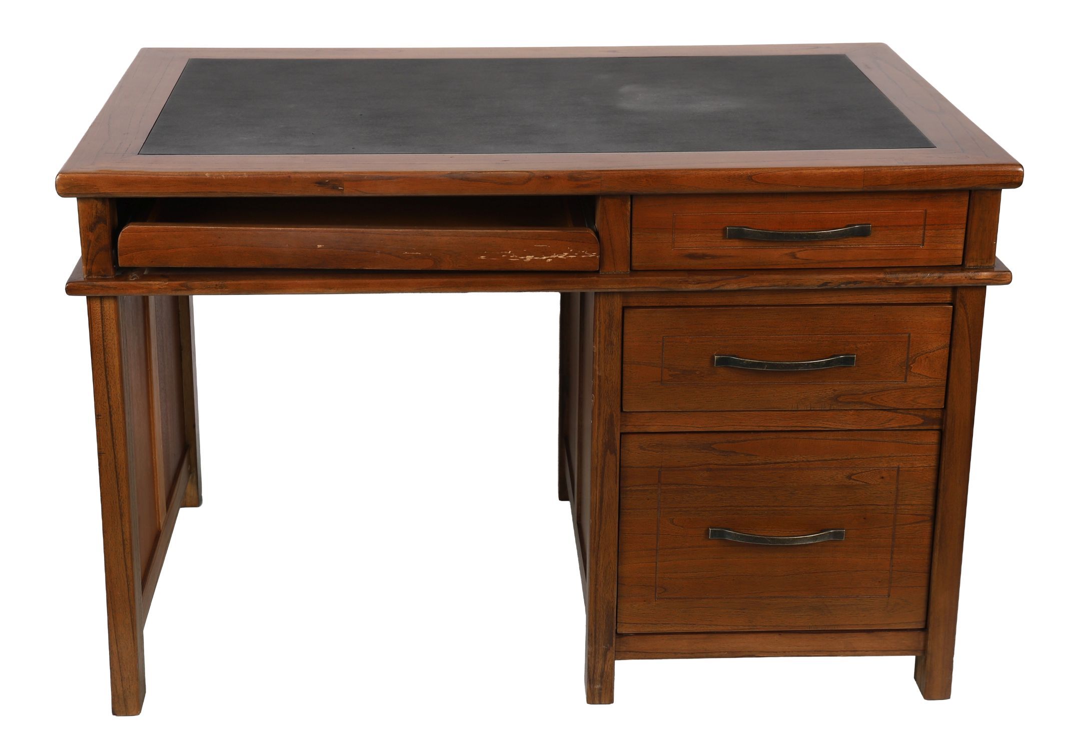 Lot 1670 OAK OFFICE DESK WITH LEATHER INSET
