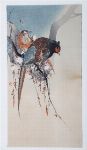 Lot 295 OHARA KOSON (1877–1945) - ROOSETER WITH CHICKS AND PHEASANTS, PAIR OF JAPANESE WOODBLOCK PRINTS