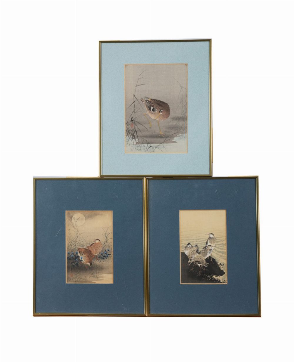 Lot 276 OHARA KOSON (1877 - 1945) - SET OF 3 JAPANESE WOODBLOCK PRINTS, WATERBIRDS AND QUAIL