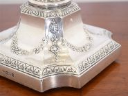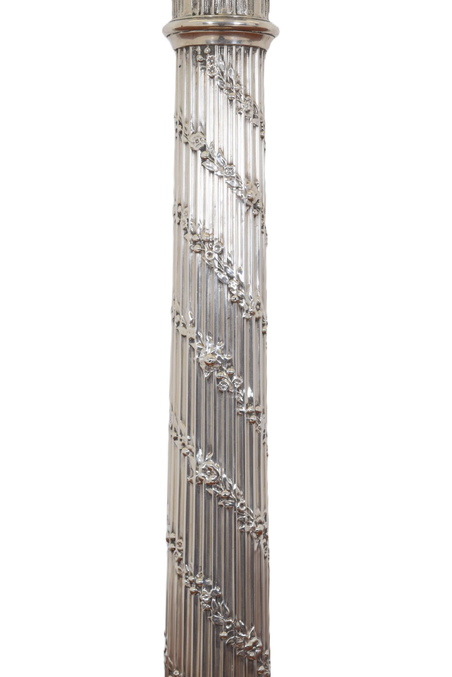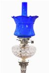 Lot 717 OIL LAMP ON SILVER COLUMN WITH CUT GLASS BOWL AND BLUE SHADE, LONDON 1911