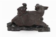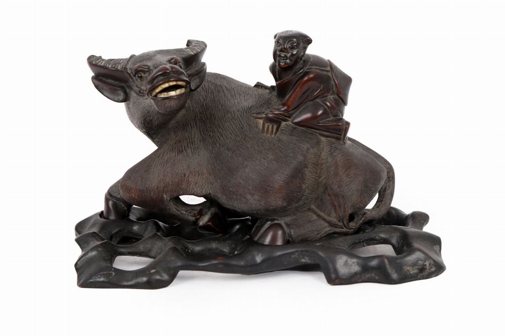 Lot 1052 ORIENTAL CARVED HARDWOOD FIGURE ON OX BUFFALO