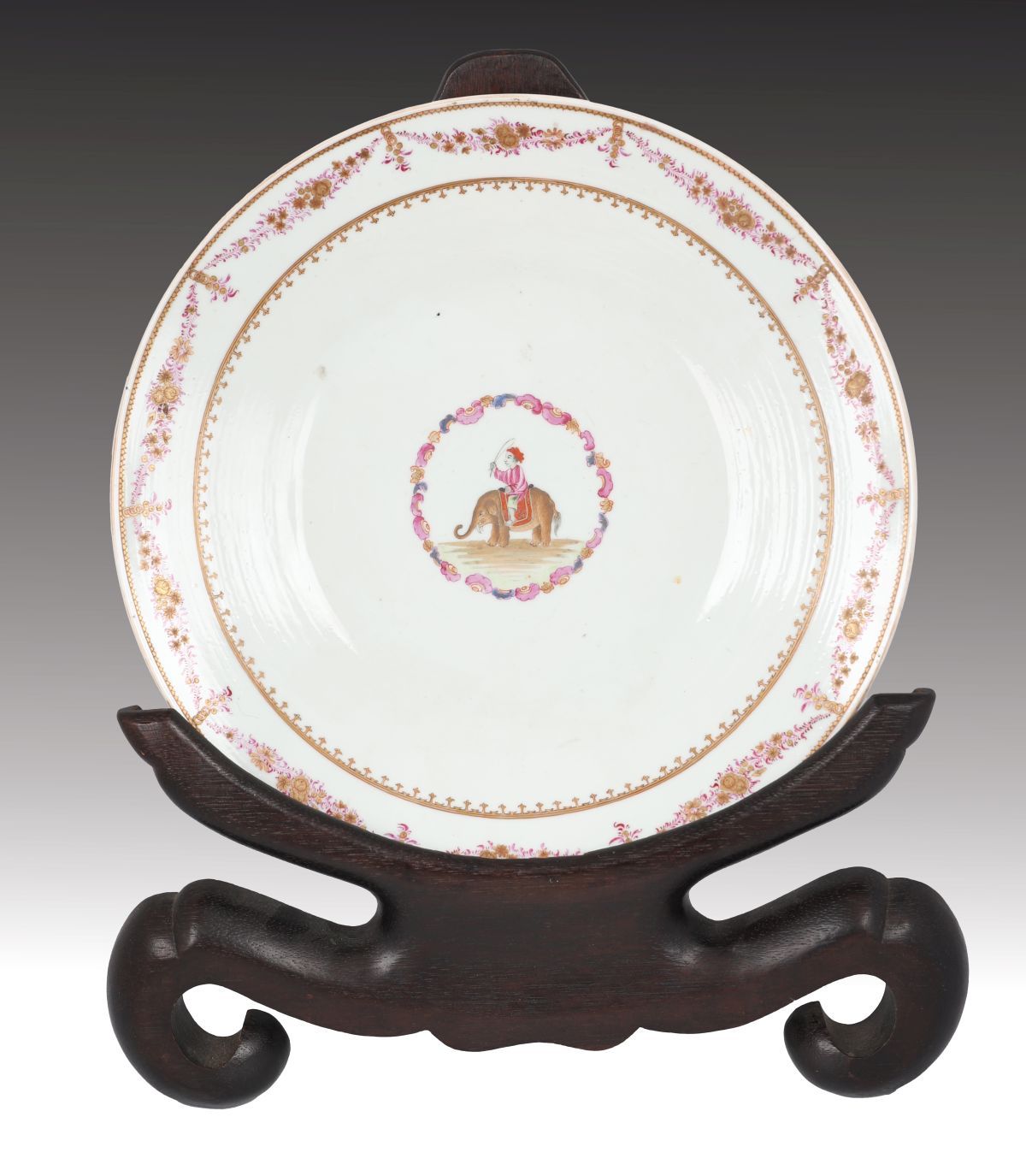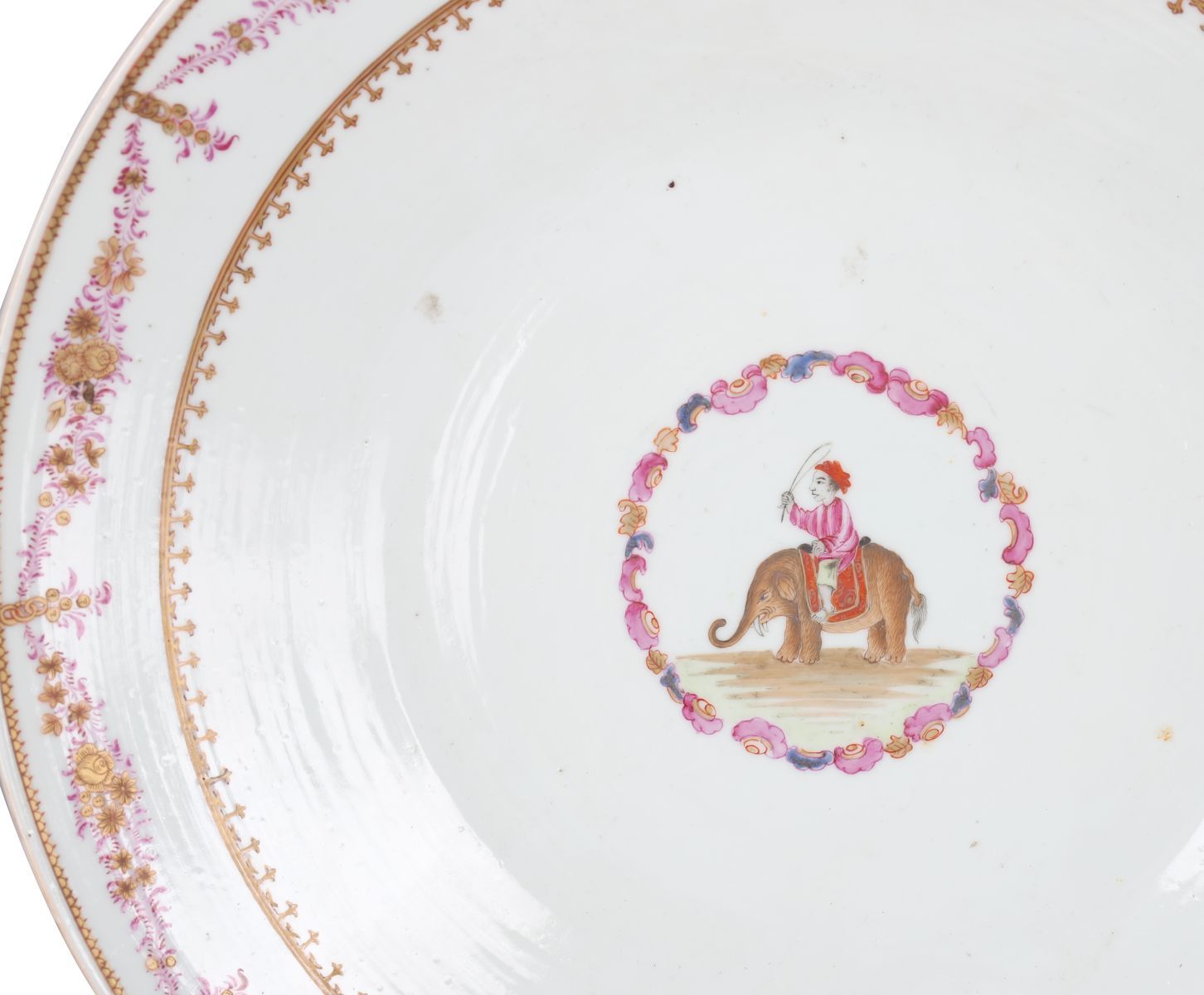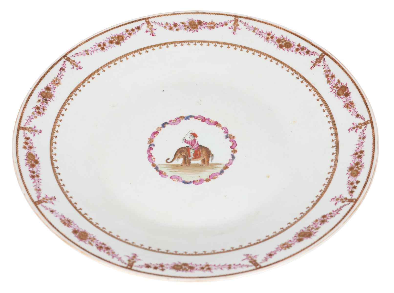 of circular form, centred by a circular cartouche depicting a figure seated on an elephant.
