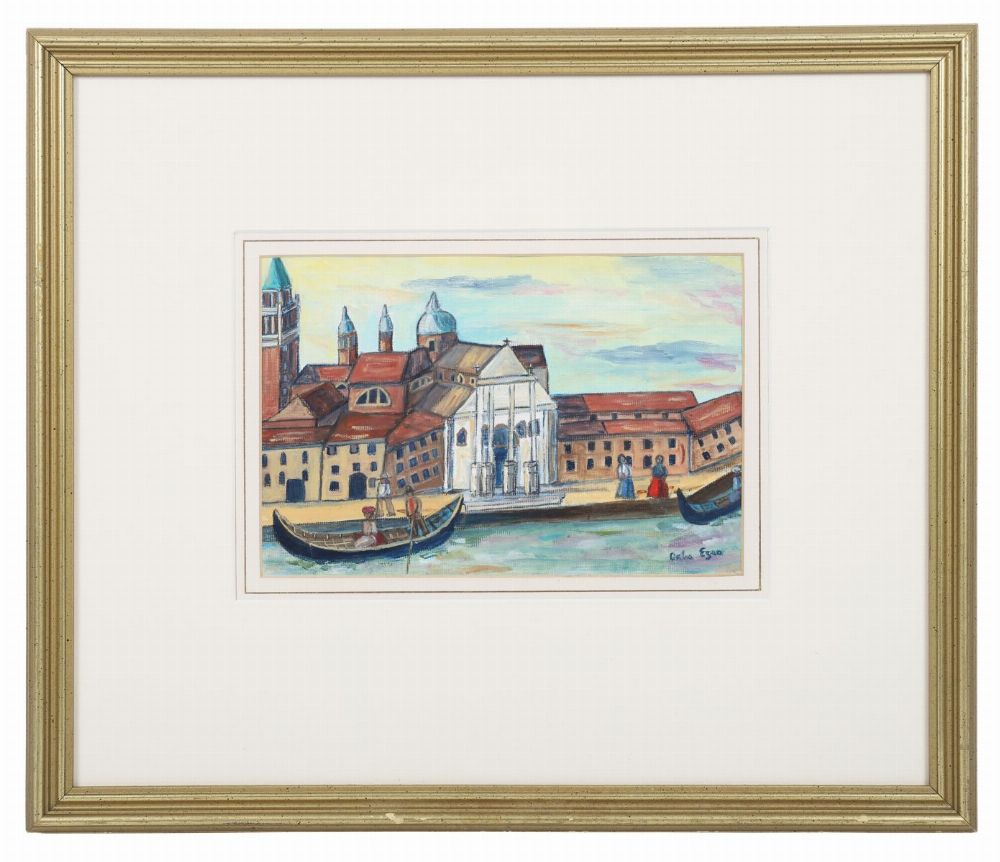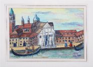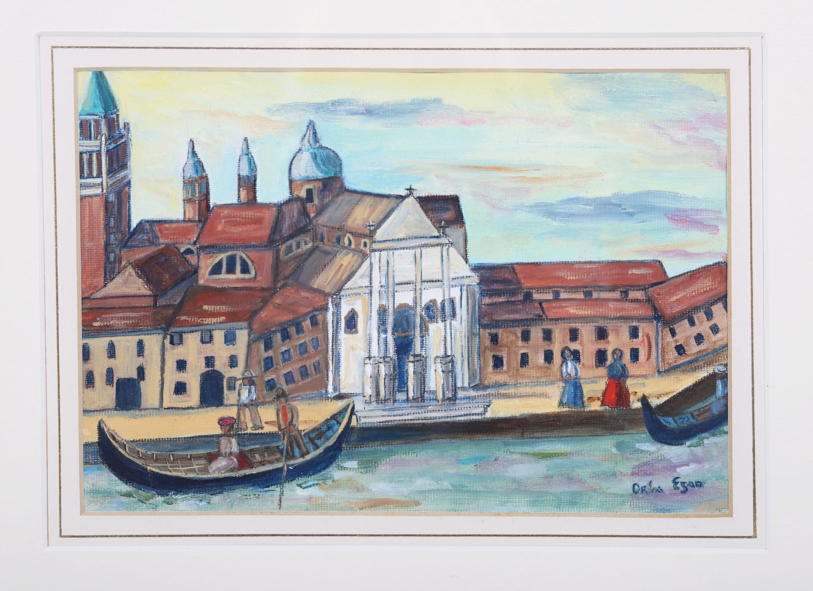 Depicting gondolas gliding along the Venetian canal before sunlit palazzi, this finely composed work combines strong architectural perspective with a serene palette and reflective water tones.