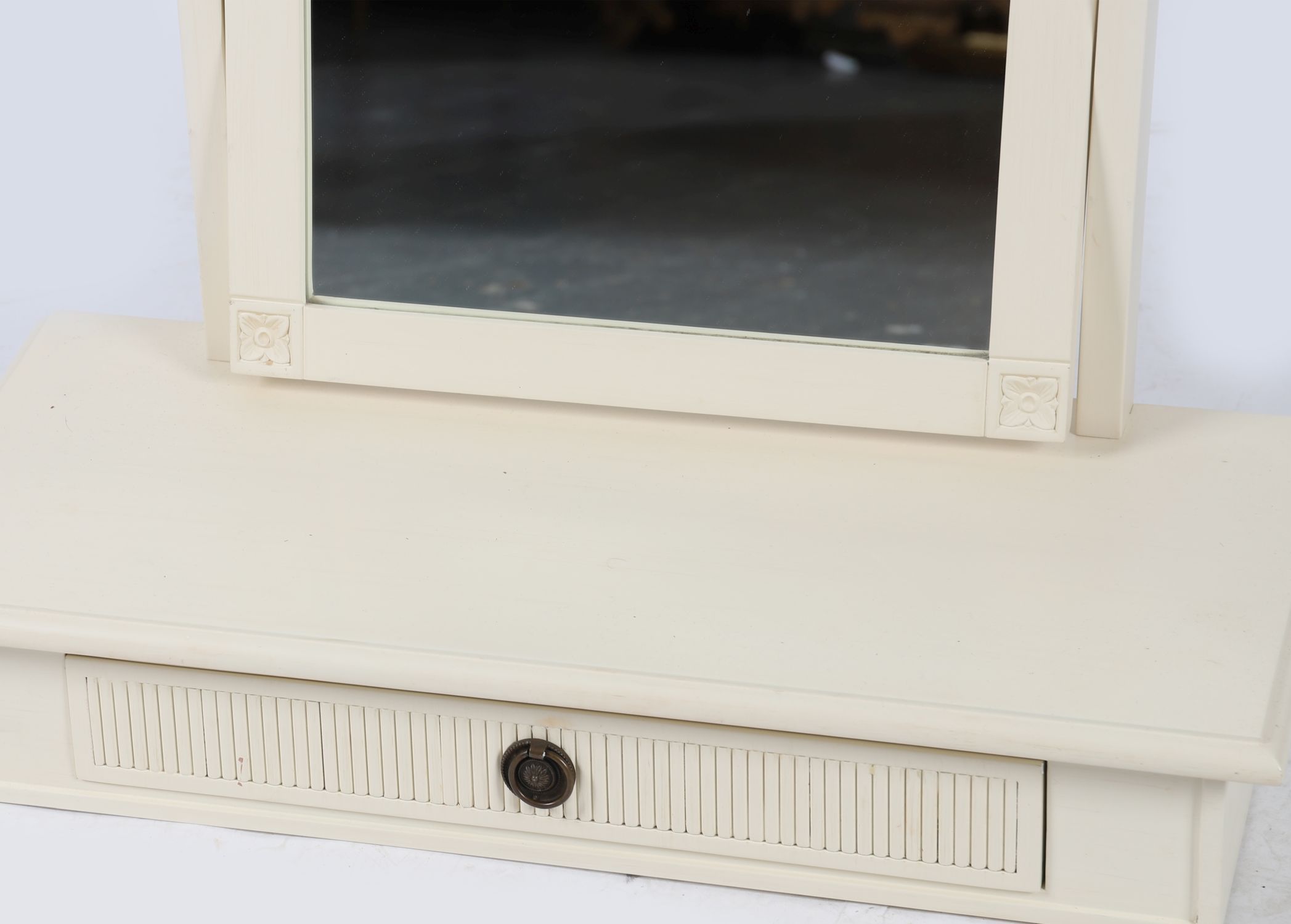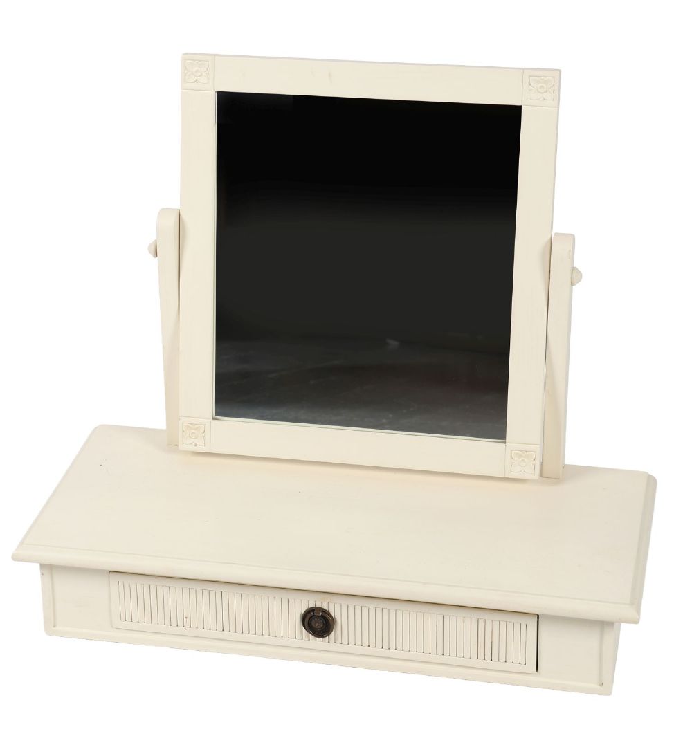 A rectangular painted crutch mirror in cream finish, supported by side columns and fitted to swing.