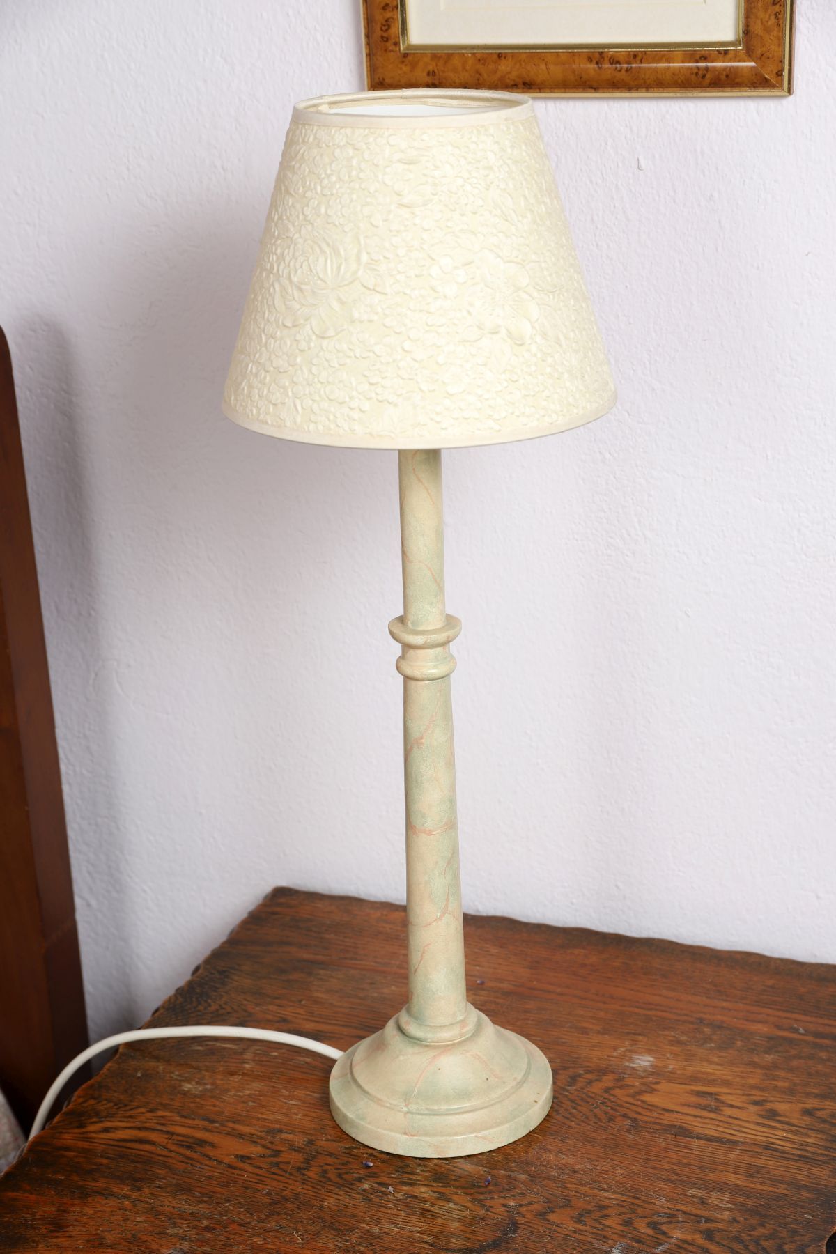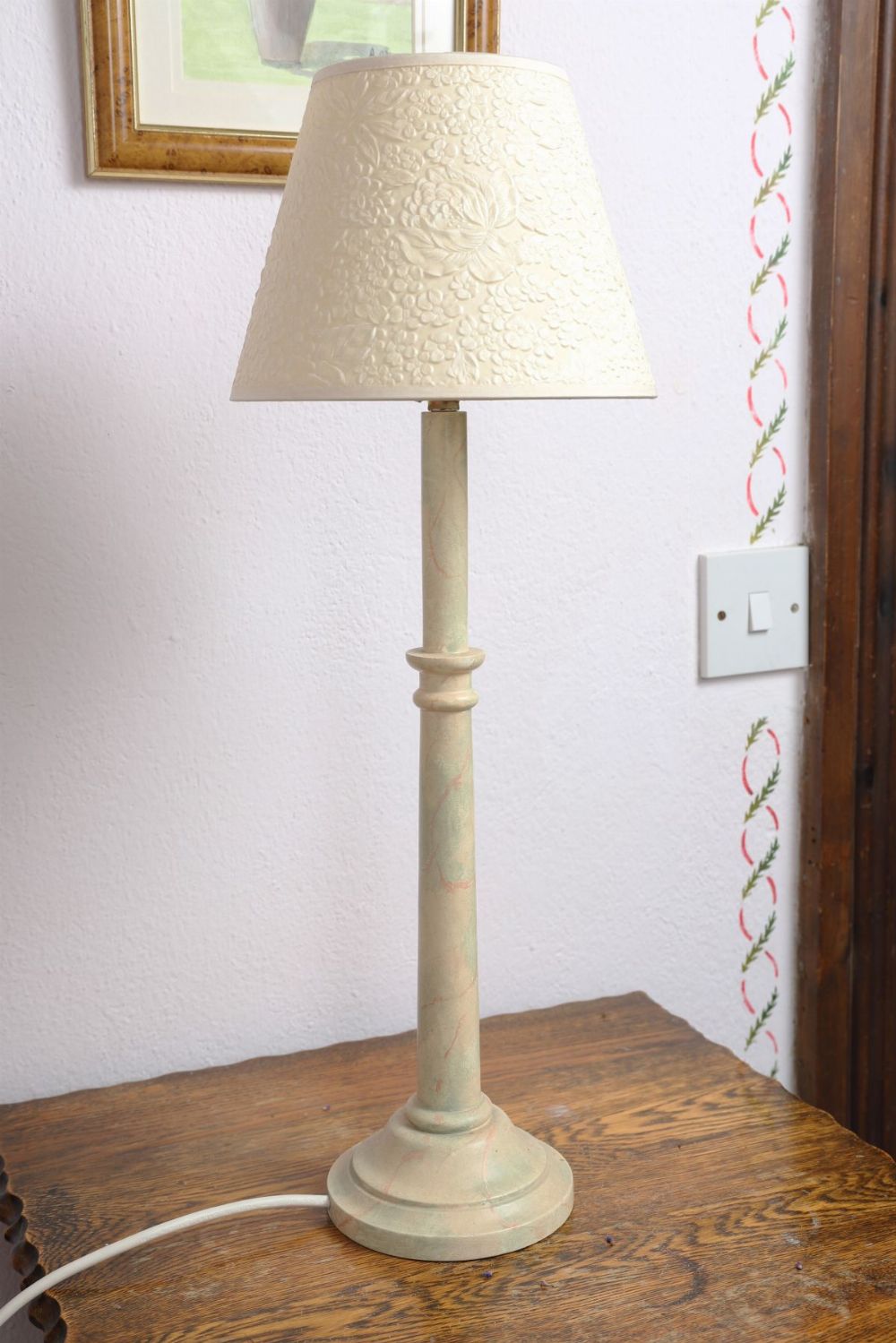 Lot 952 PAINTED TURNED STEMMED TABLE LAMP AND SHADE