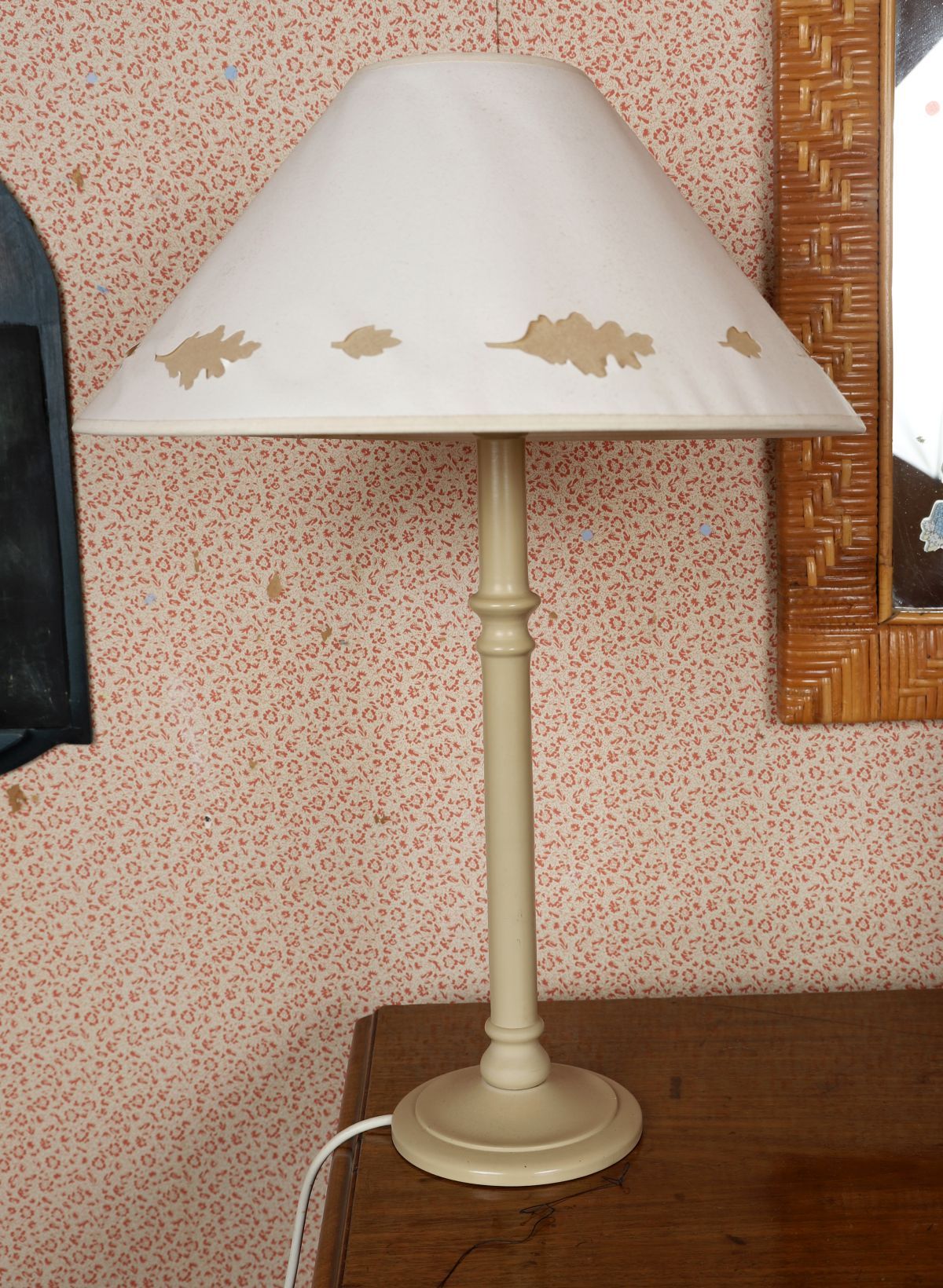 Lot 864 PAINTED TURNED STEMMED TABLE LAMP AND SHADE