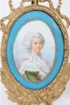 Traditionally identified as Louis XVI and Marie Antoinette, each depicted in formal court dress, housed in matching gilt metal frames.