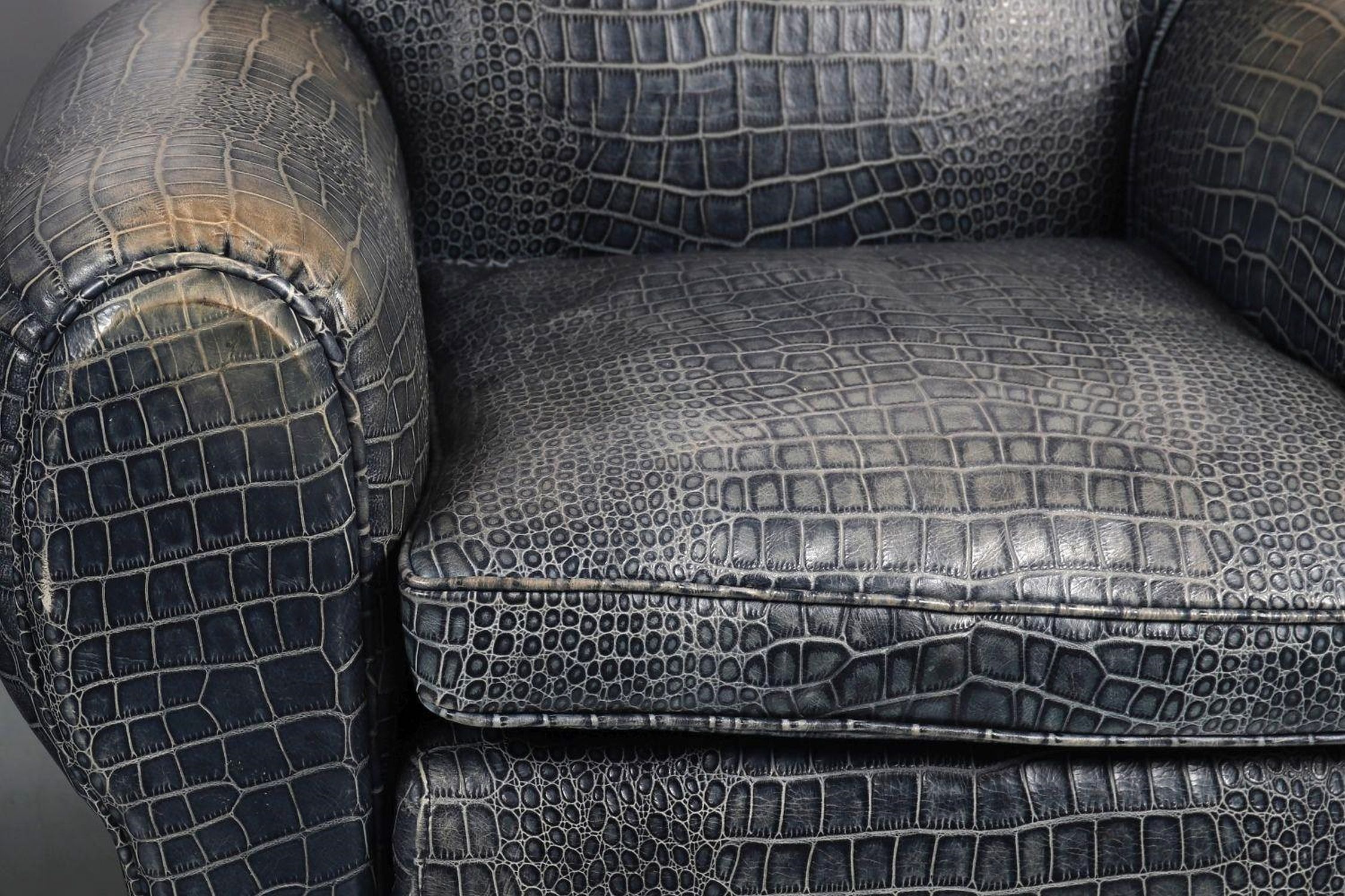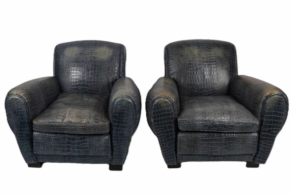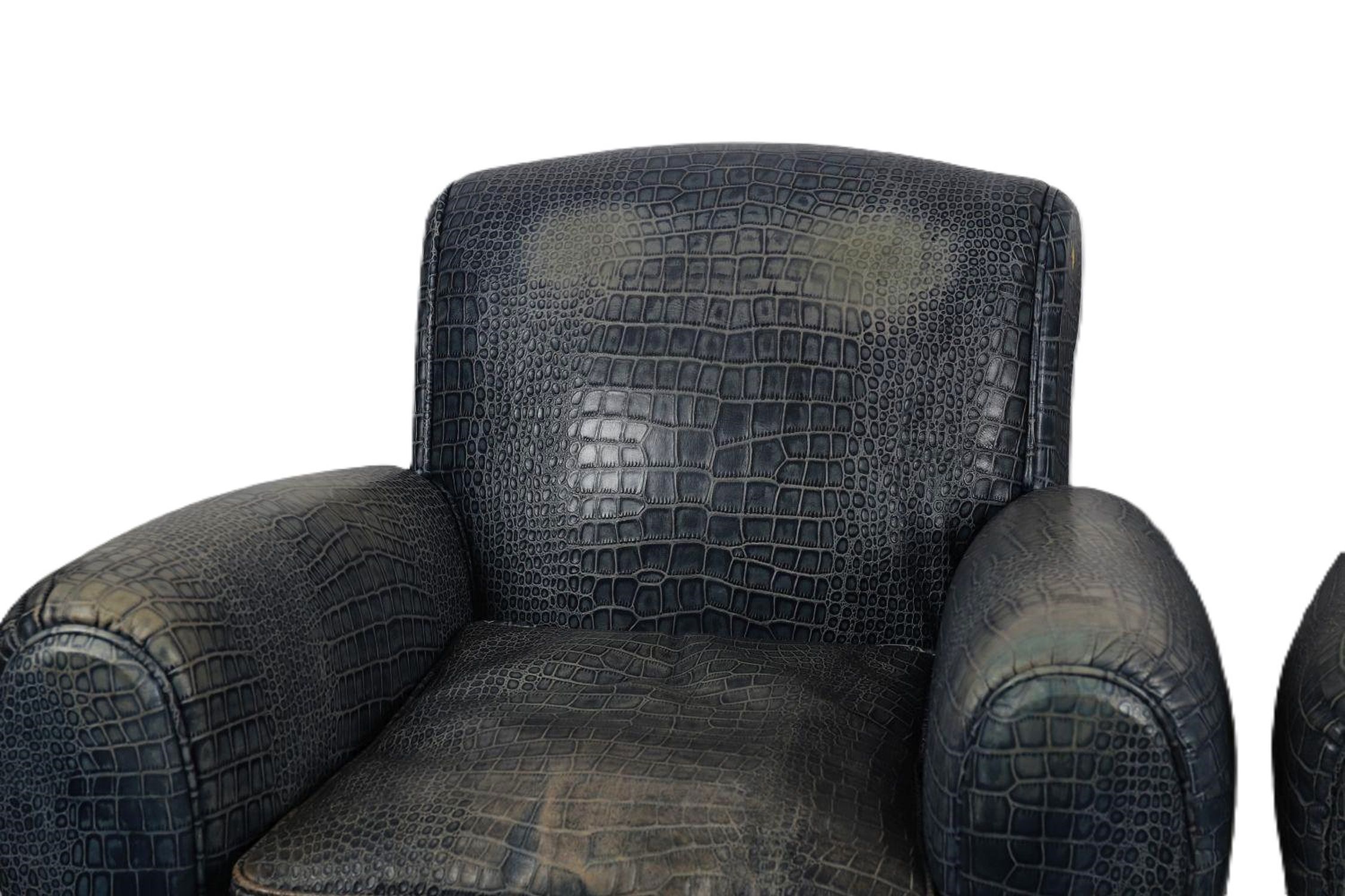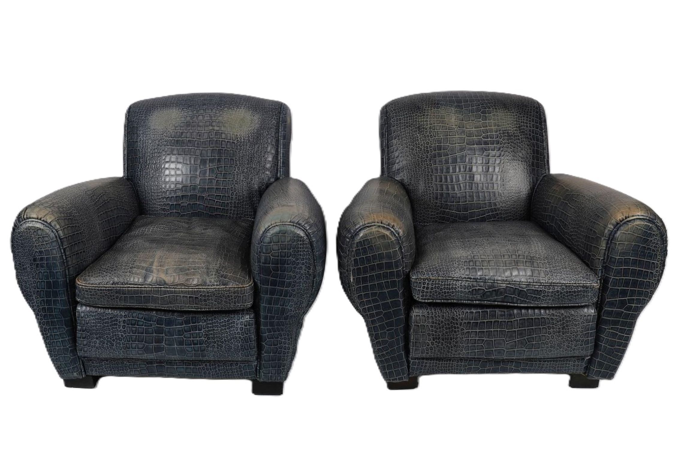 Lot 875 PAIR OF 1920S FAUX CROCODILE SKIN UPHOLSTERED CLUB ARMCHAIRS