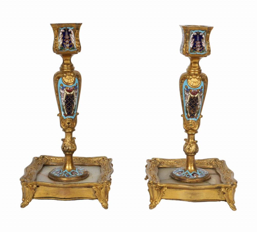 Lot 511 PAIR OF 19TH-CENTURY CLOISONNÉ AND ONYX ORMOLU-MOUNTED CANDLESTICKS