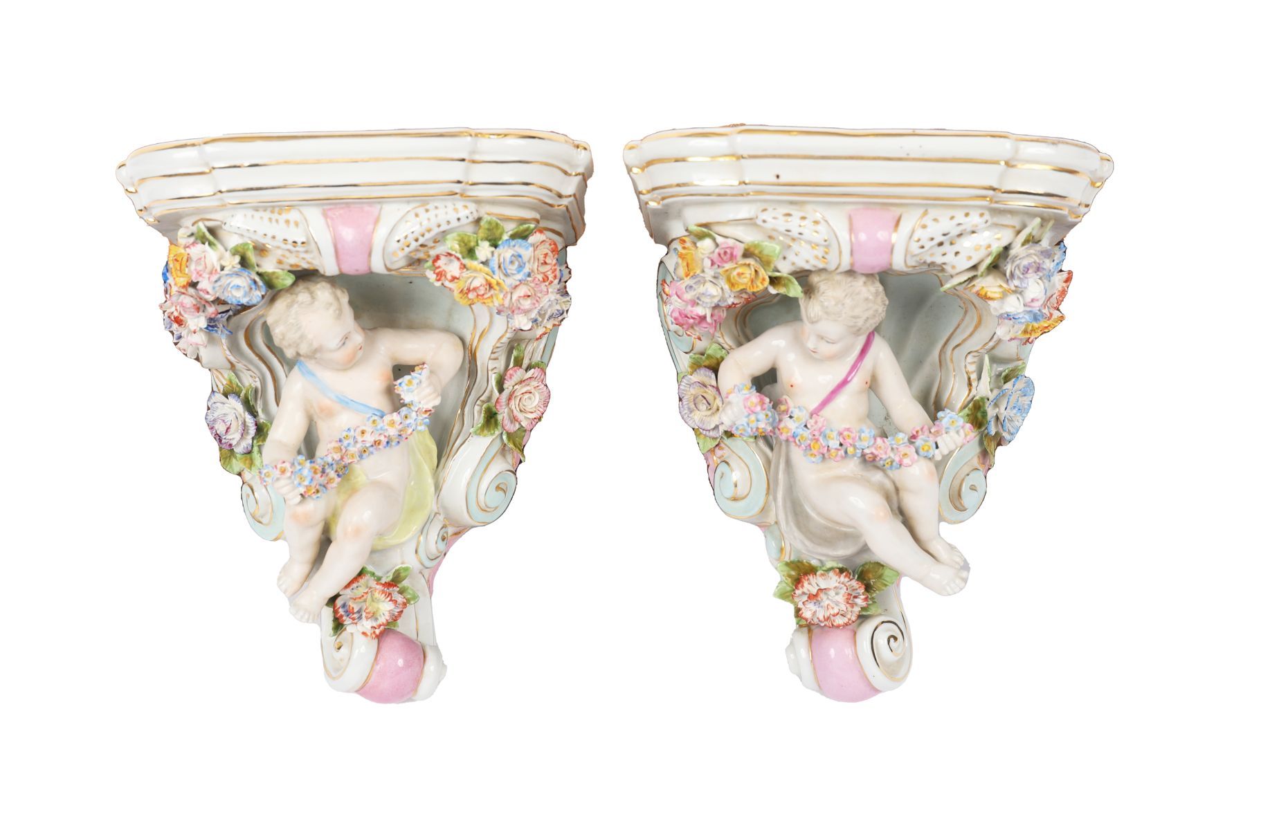Lot 356 PAIR OF 19TH-CENTURY DRESDEN PORCELAIN WALL BRACKETS