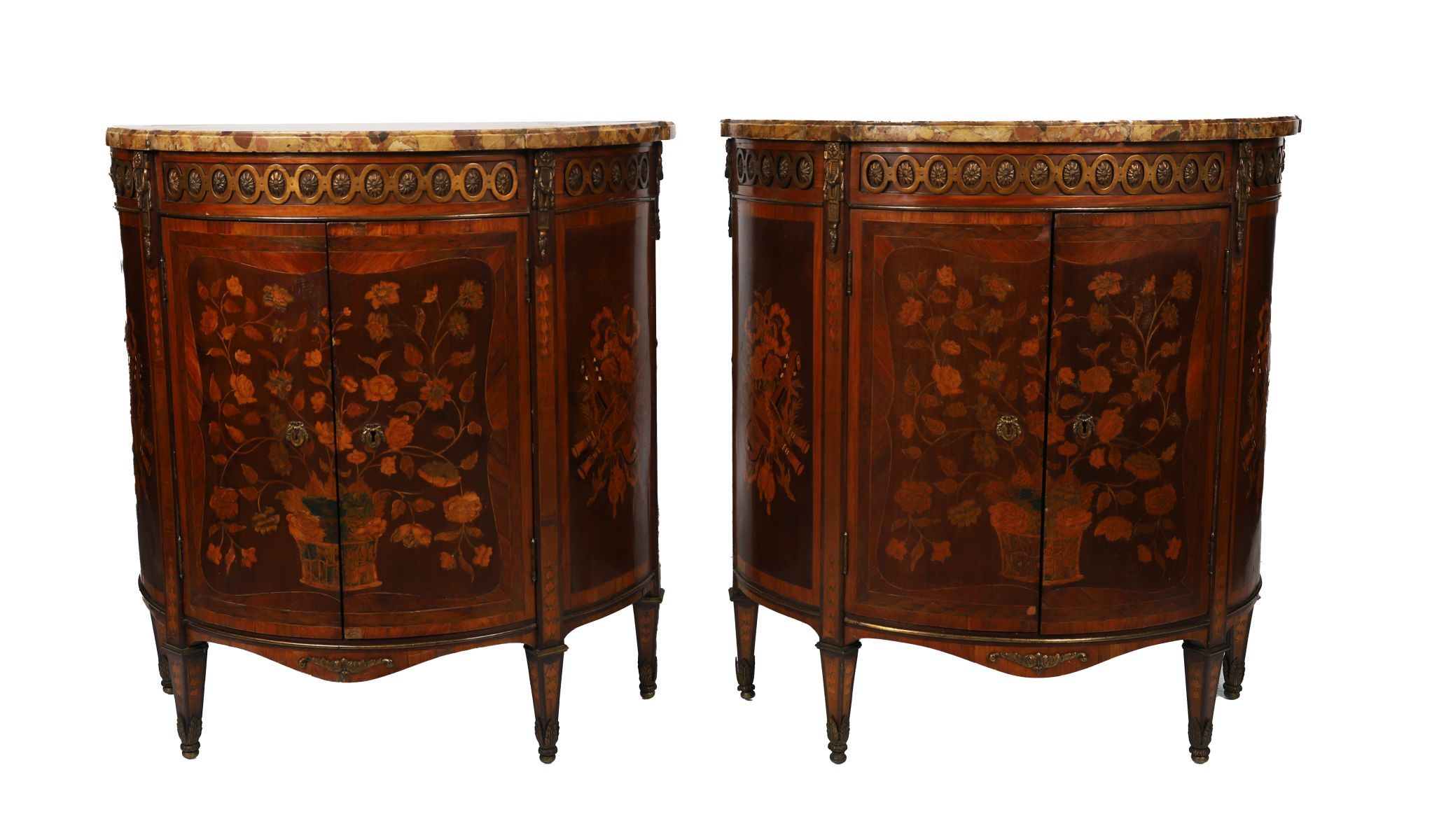 Lot 392 PAIR OF 19TH-CENTURY FRENCH MARQUETRY ORMOLU-MOUNTED COMMODES WITH ROUGE ROYAL MARBLE TOPS