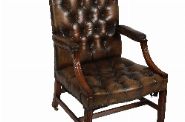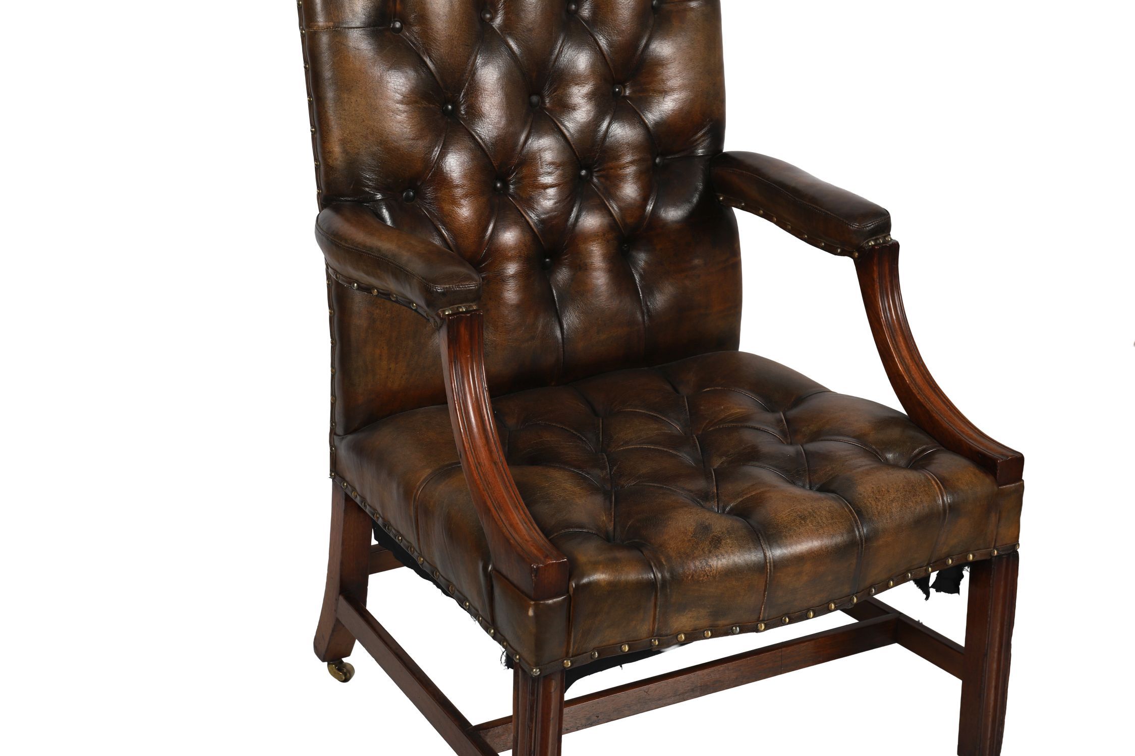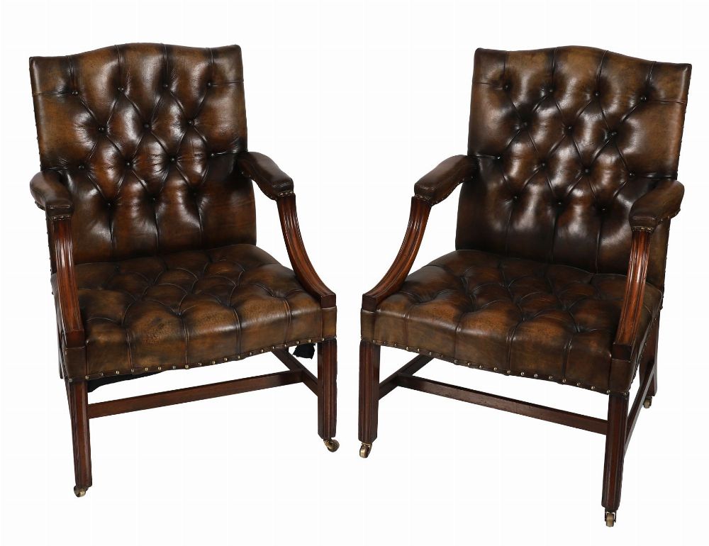 Lot 238 PAIR OF 19TH-CENTURY GAINSBOROUGH LIBRARY ARMCHAIRS IN BUTTONED LEATHER UPHOLSTERY