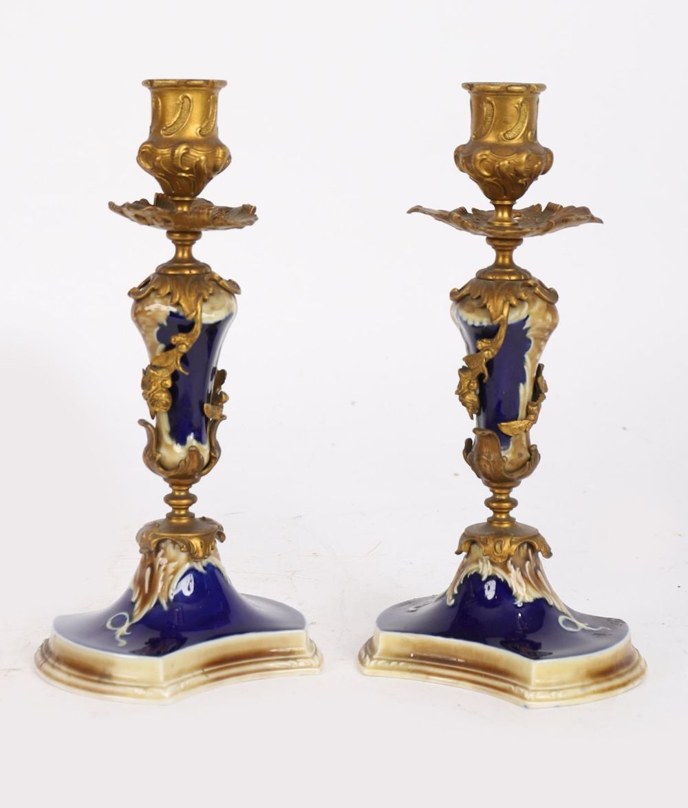 Lot 892 PAIR OF 19TH-CENTURY FRENCH GILT BRONZE AND PORCELAIN CANDLESTICKS