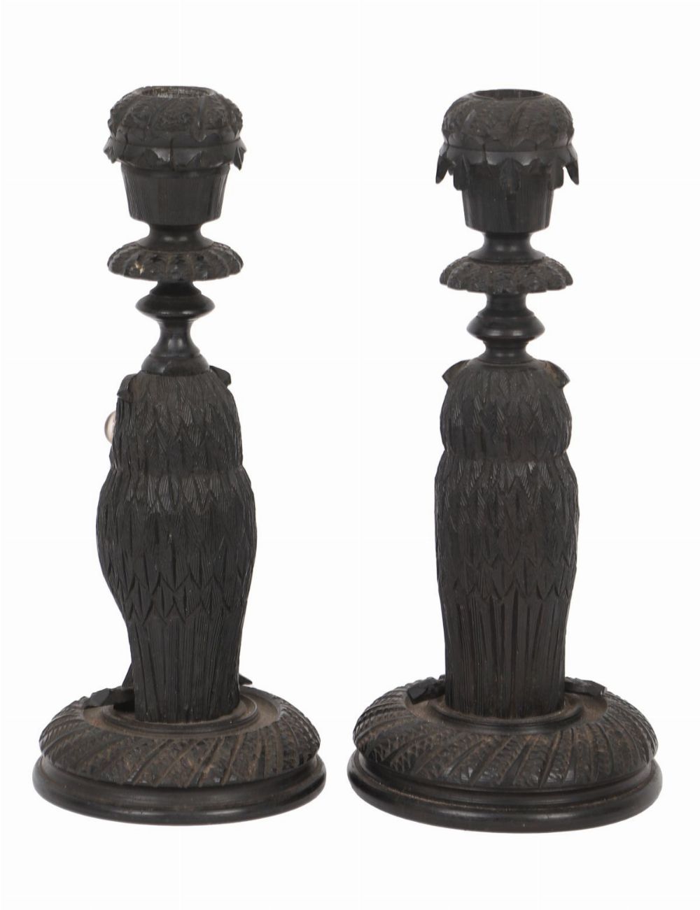 Lot 249 PAIR OF 19TH-CENTURY IRISH BOG OAK CANDLESTICKS