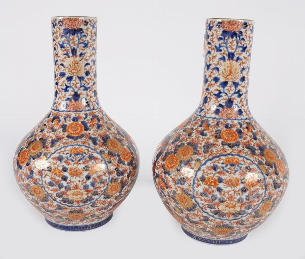 Lot 91 PAIR OF 19TH-CENTURY JAPANESE IMARI BOTTLE VASES