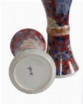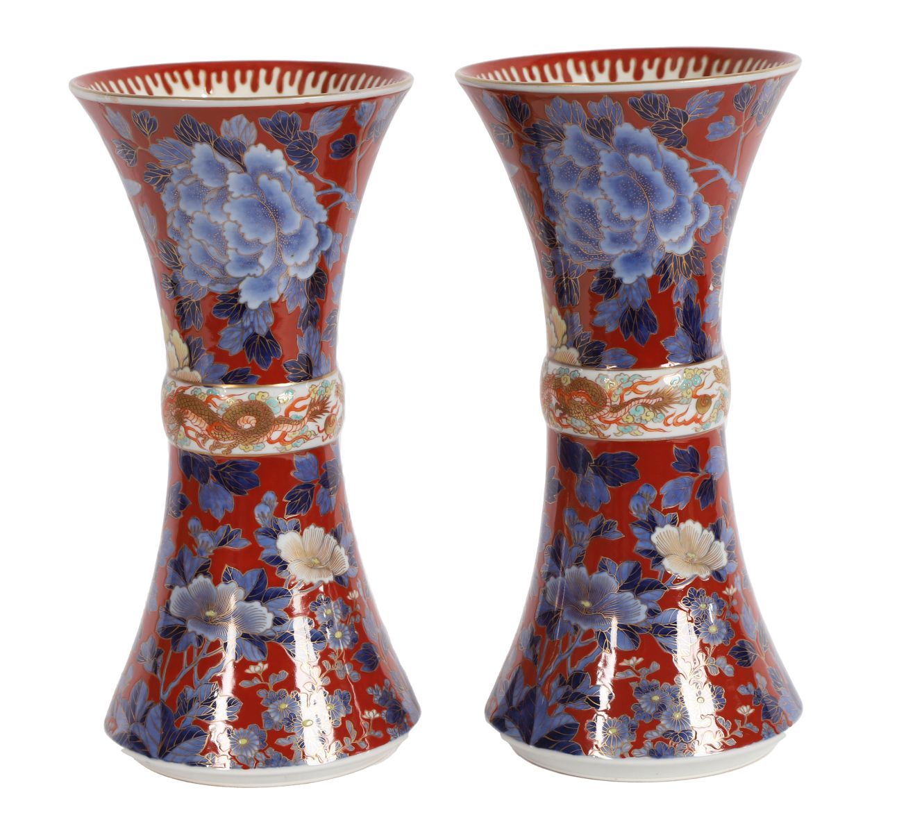 Pair of 19th-century Japanese Imari porcelain vases, decorated in underglaze blue with iron red and gilt highlights, each of baluster form.