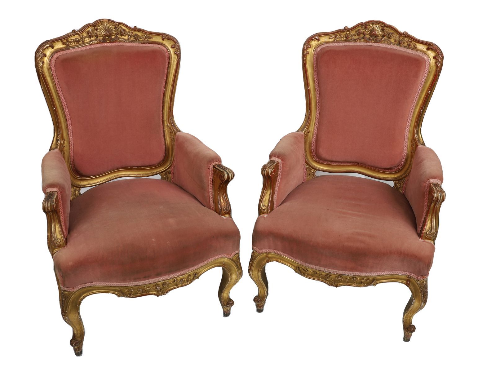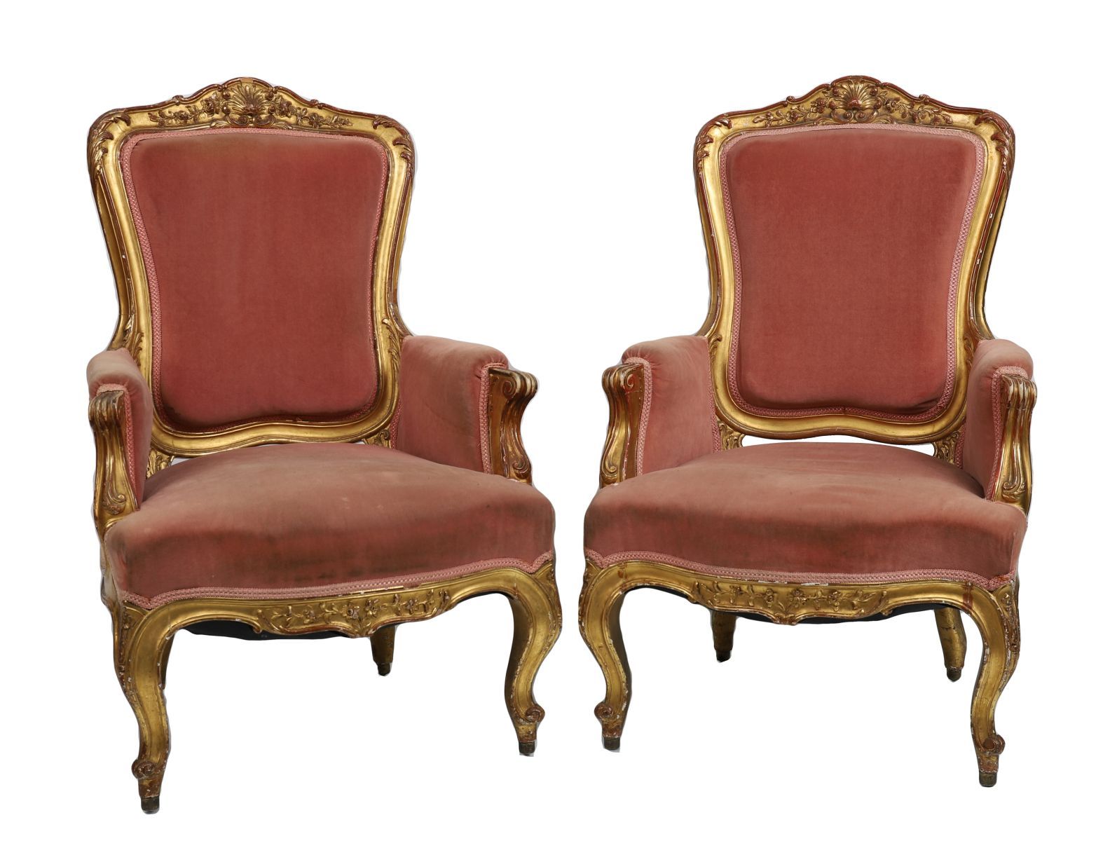 Lot 896 PAIR OF 19TH-CENTURY LOUIS XV STYLE GILTWOOD ARMCHAIRS